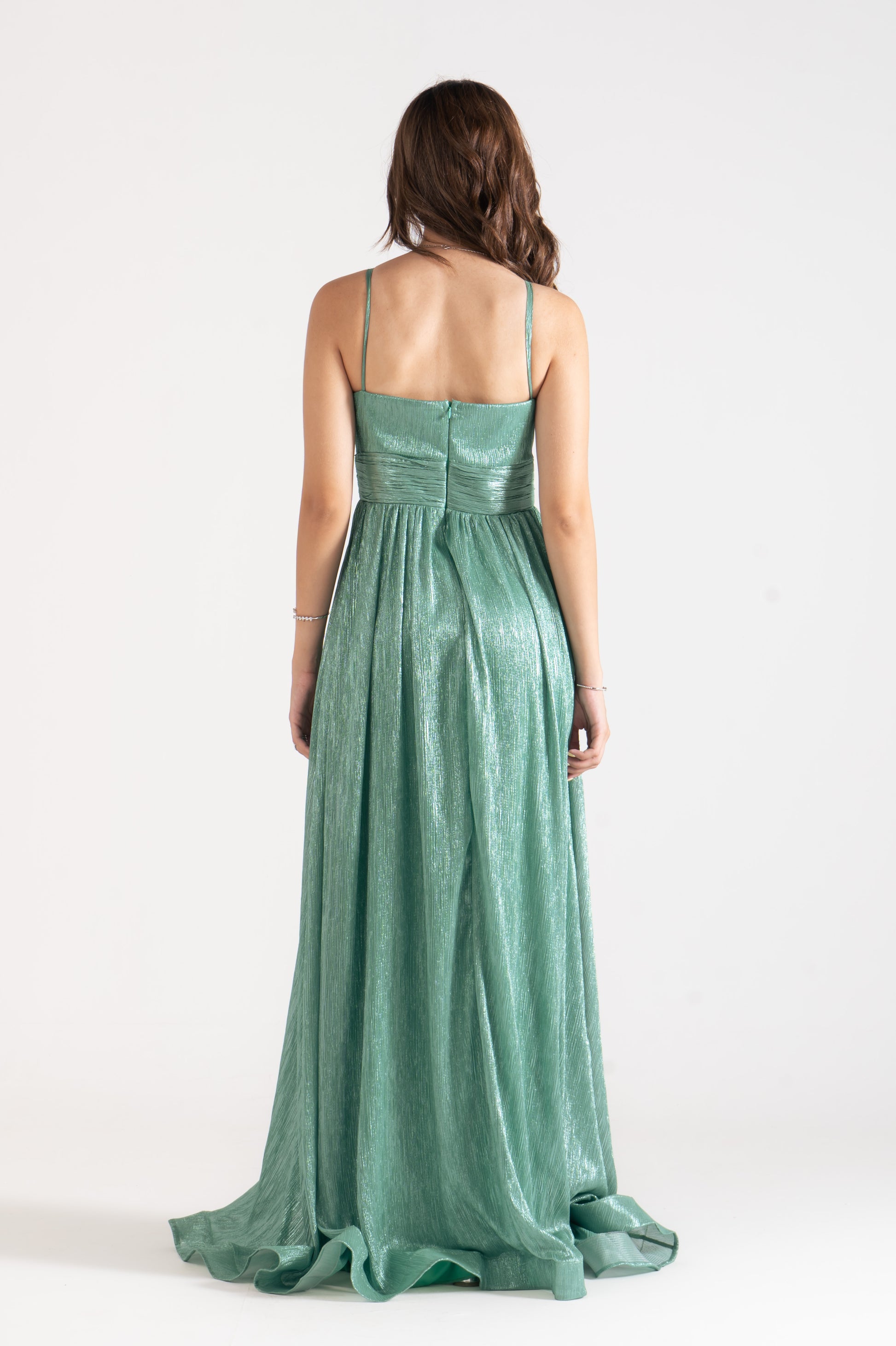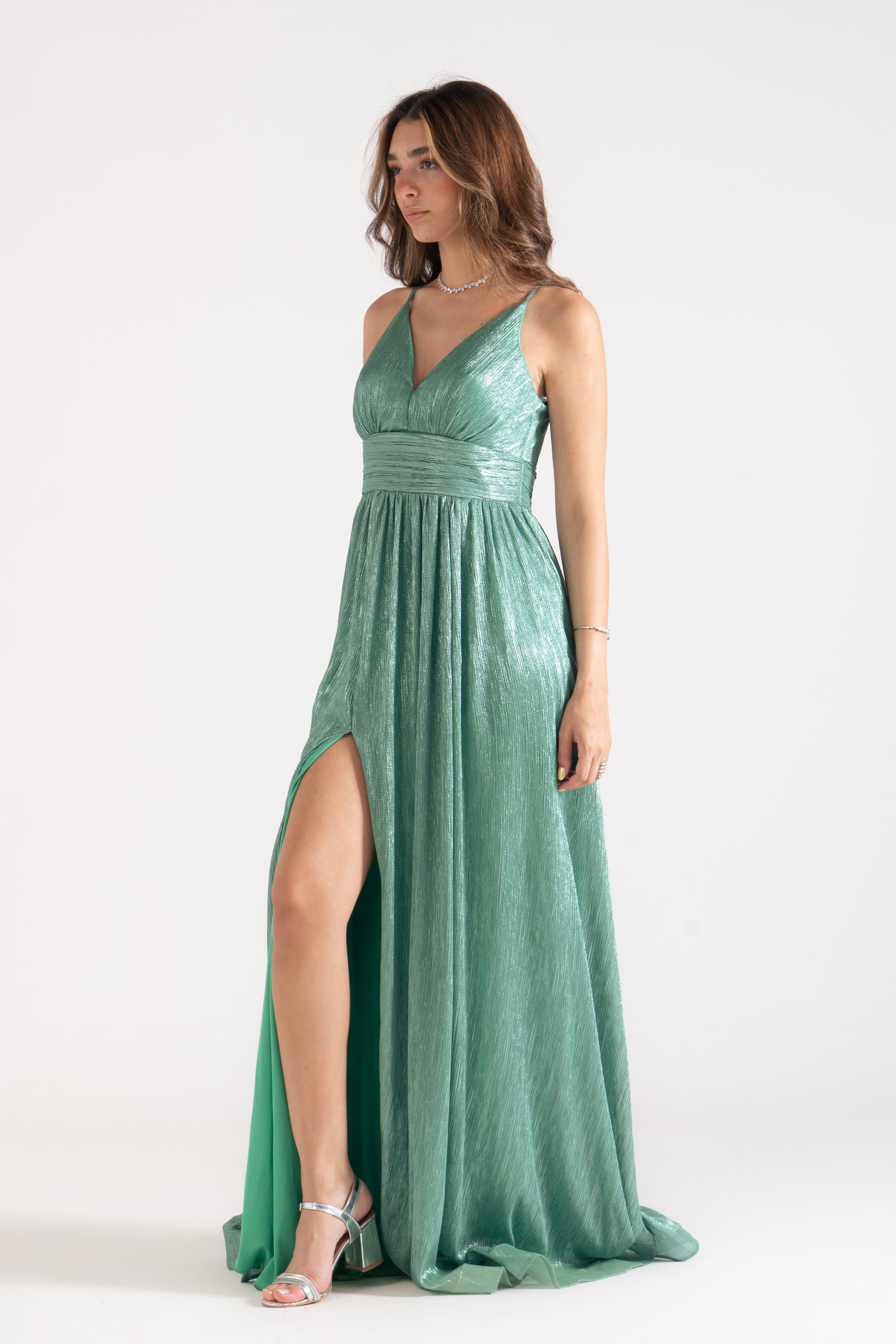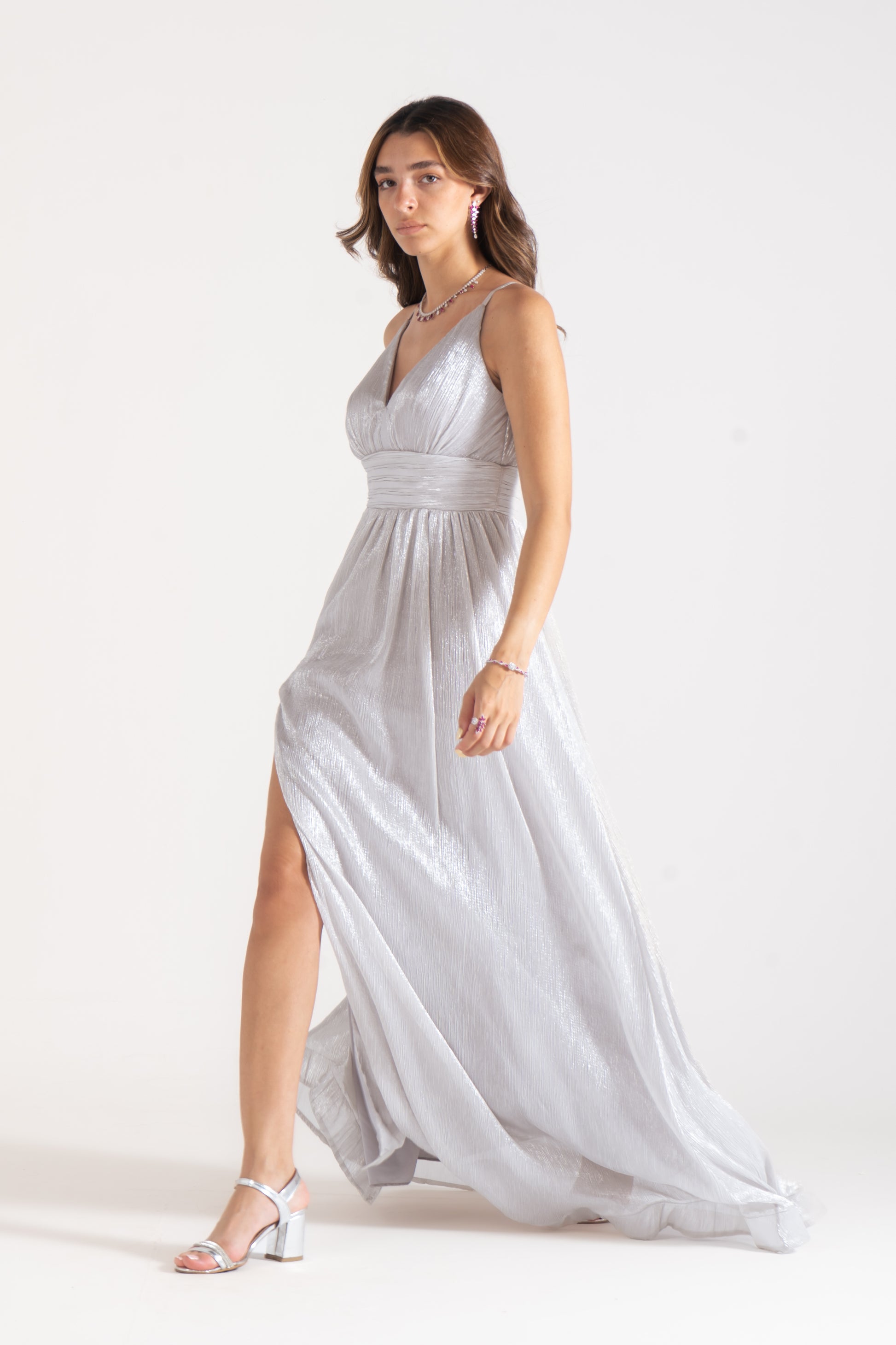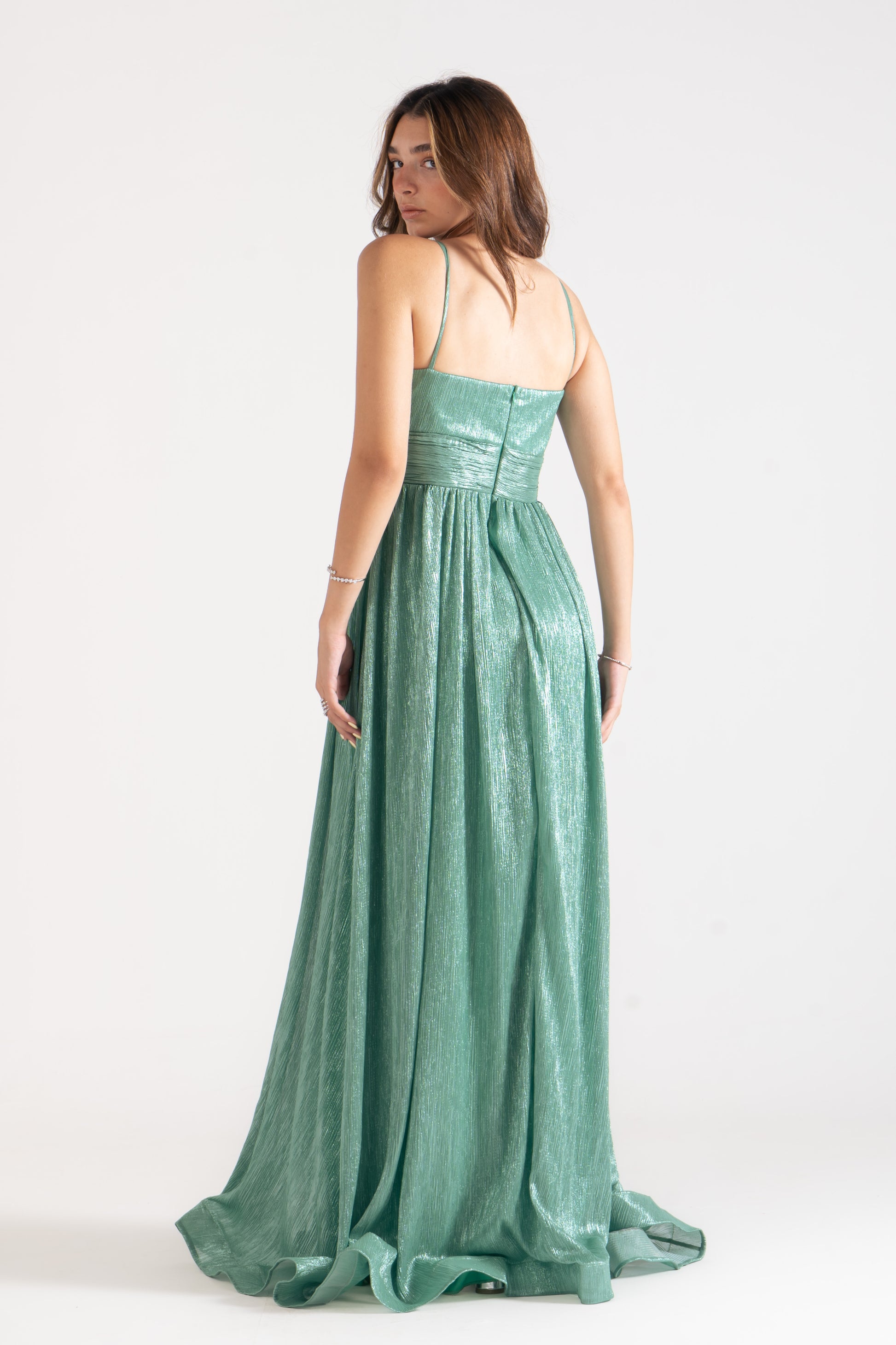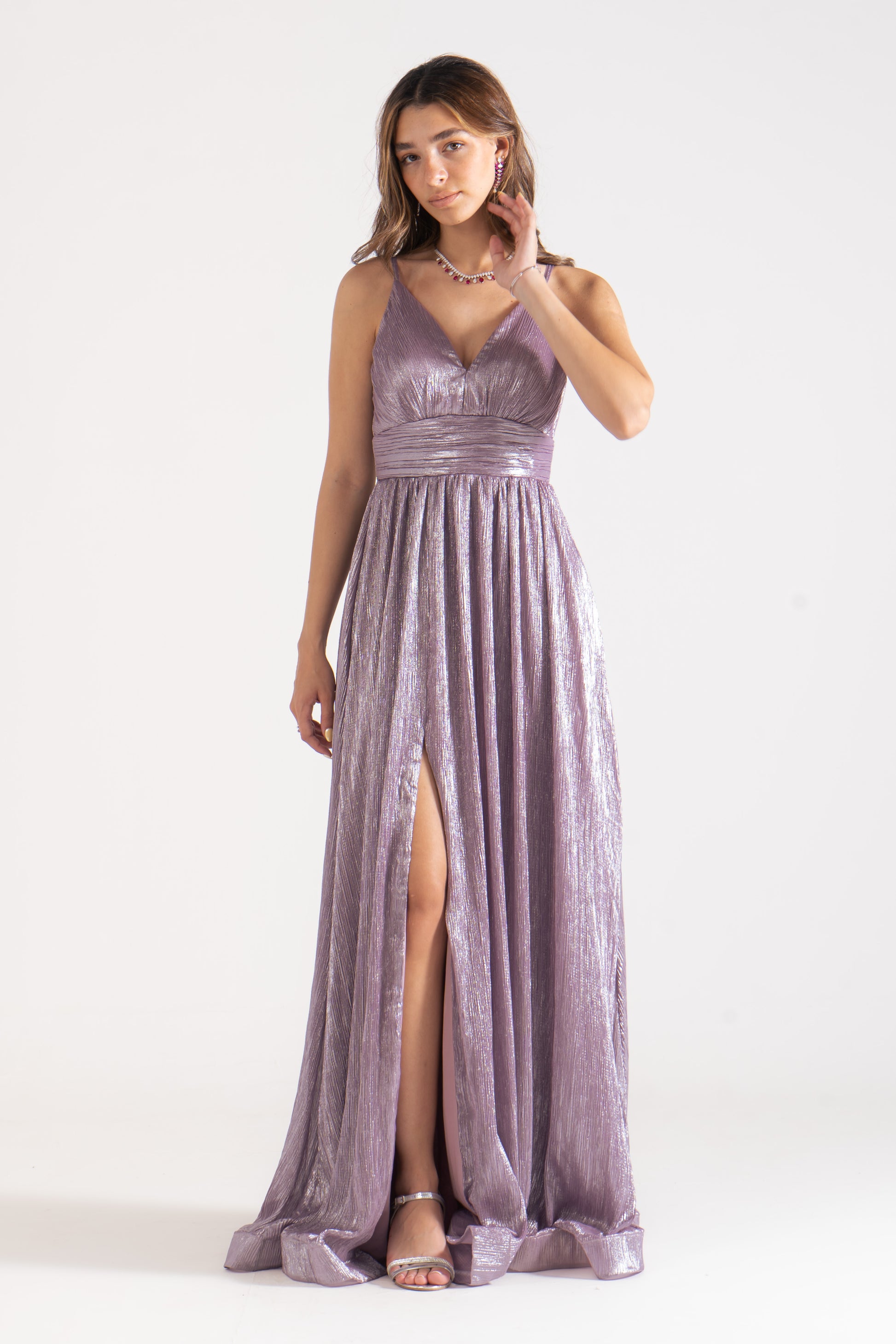 The Amadee prom dress is a stunning sleeveless design featuring a daring high slit and a draped waist, perfect for making a statement. This elegant soiree dress combines modern style with sophistication, ensuring you stand out at any evening event. Embrace your confidence and shine all night long!