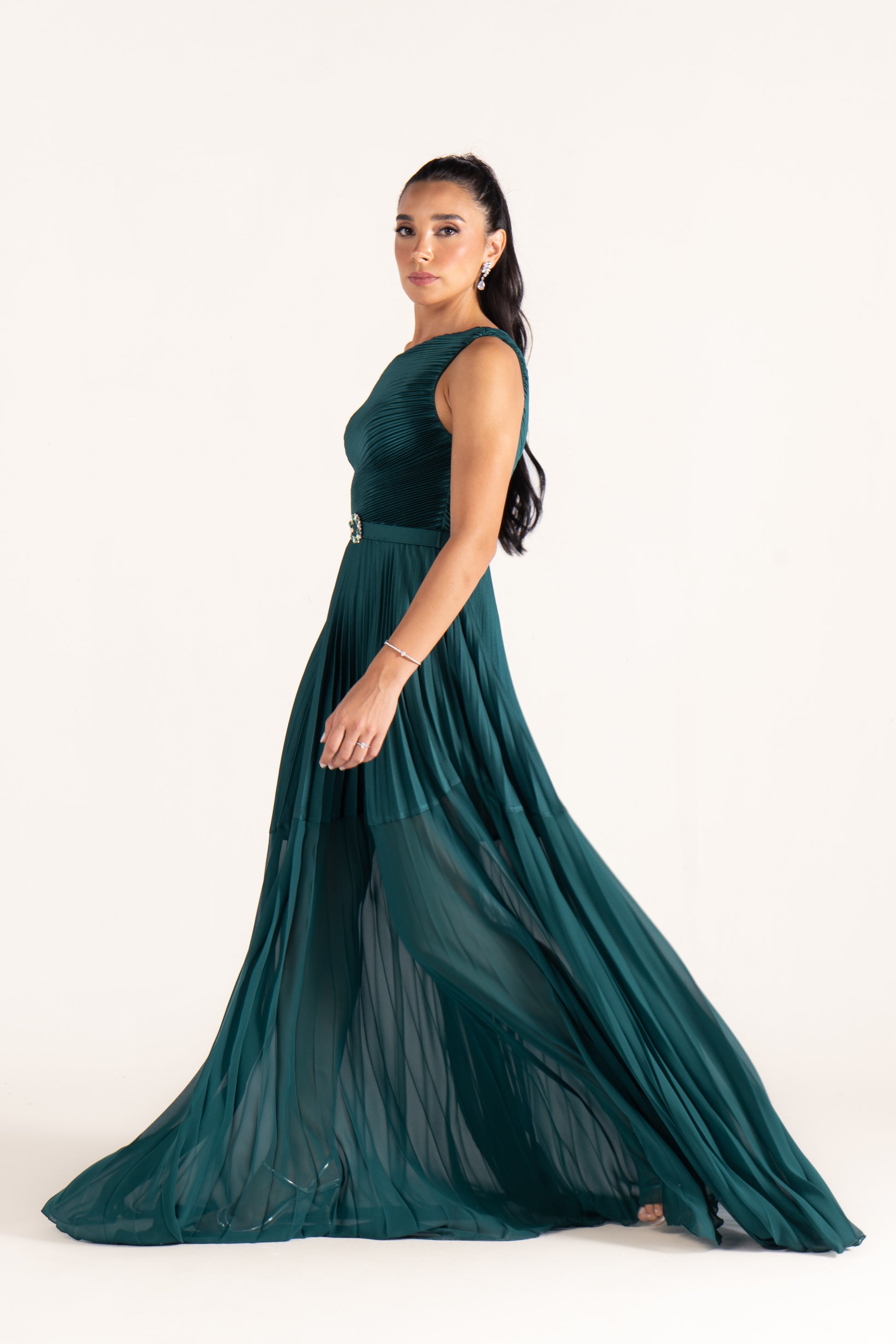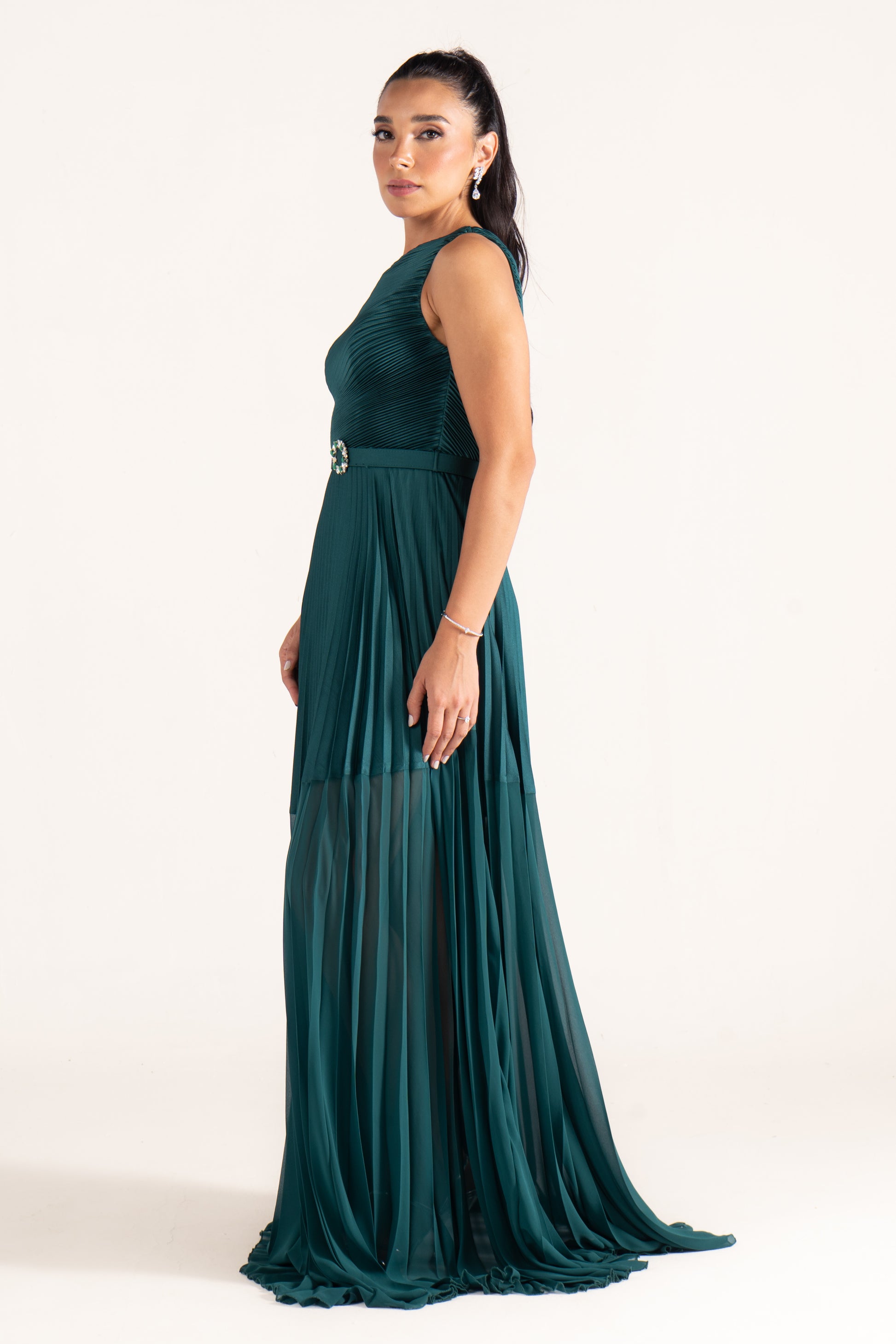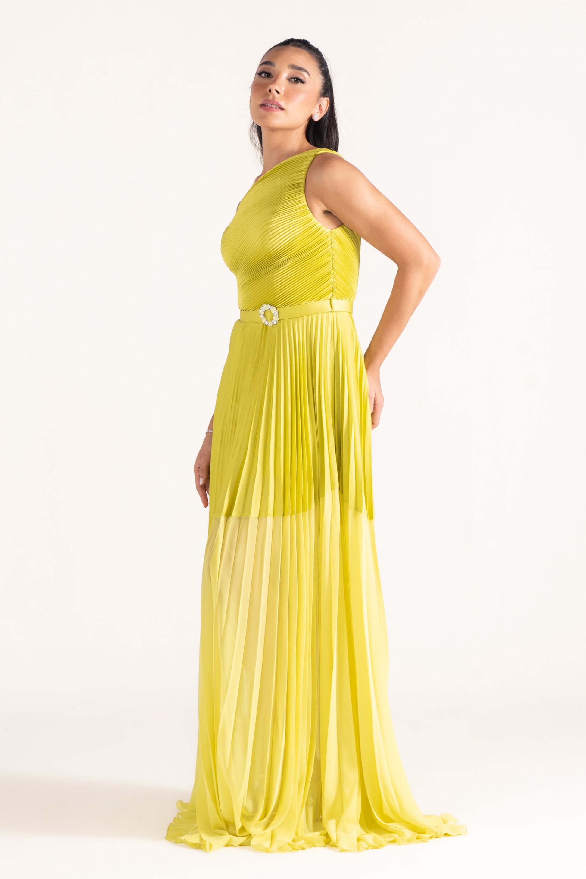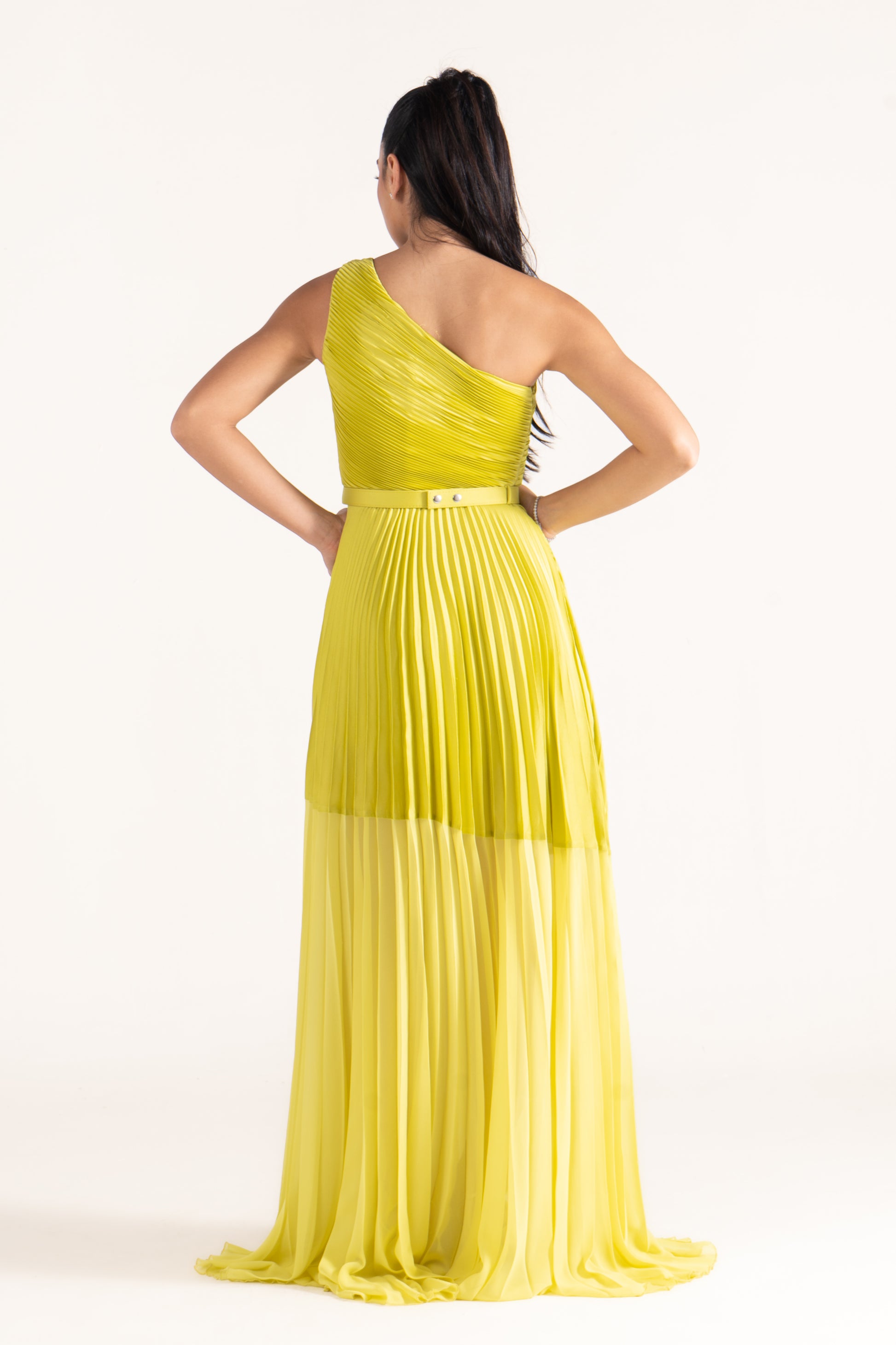 Kamila’s one-shoulder draped silhouette is cinched with a sleek belt, creating definition at the waist. A versatile evening dress that balances minimalism with sophistication.