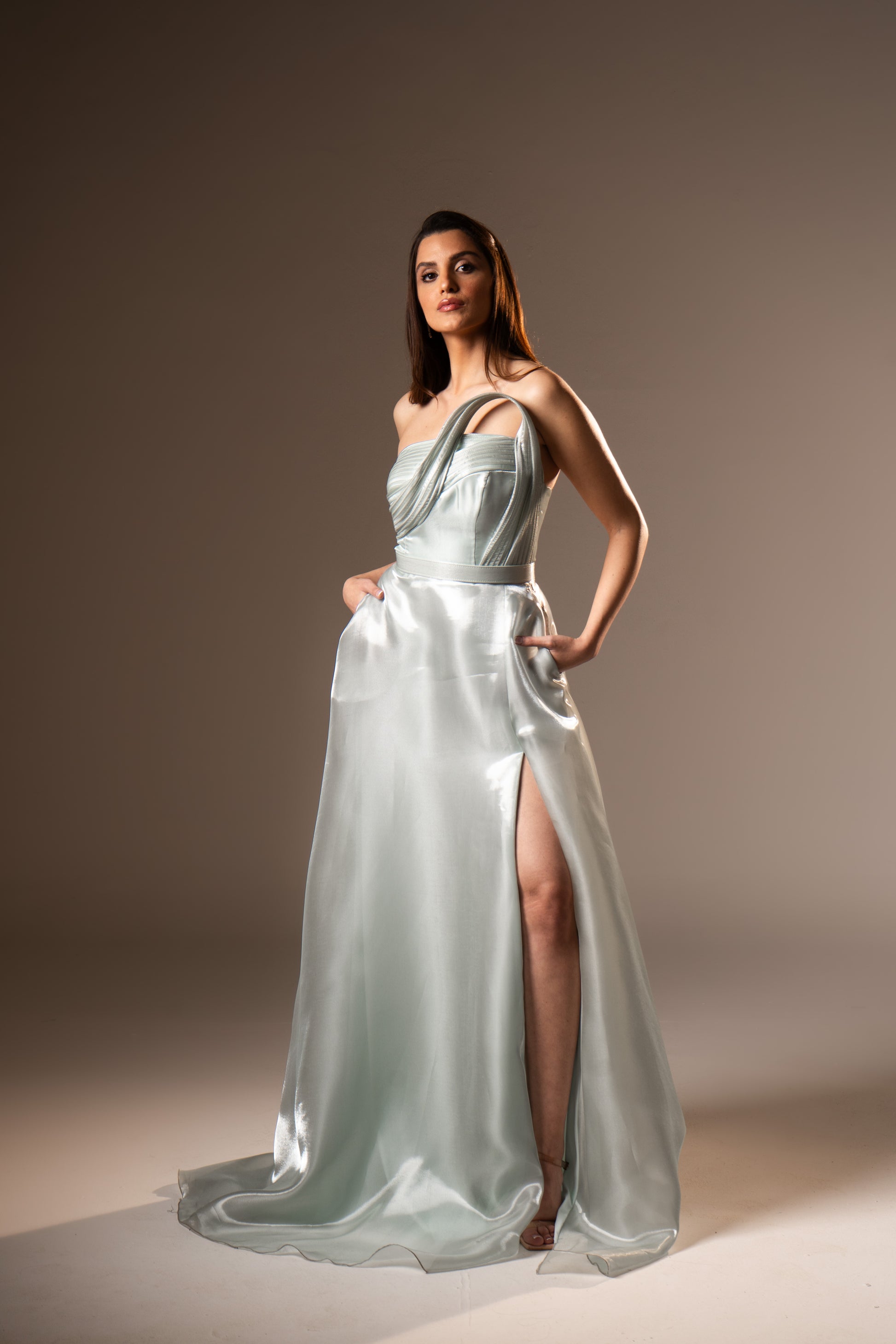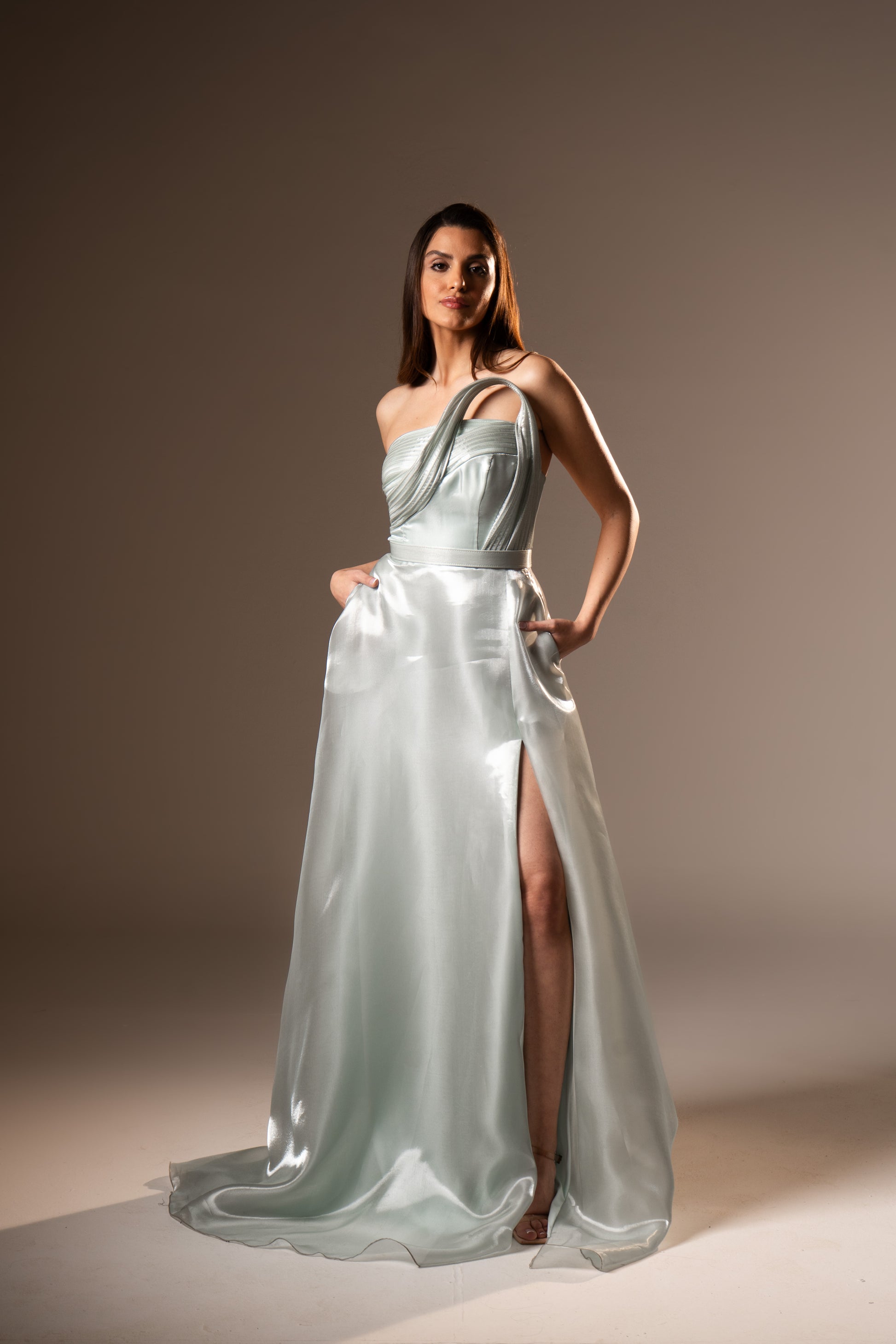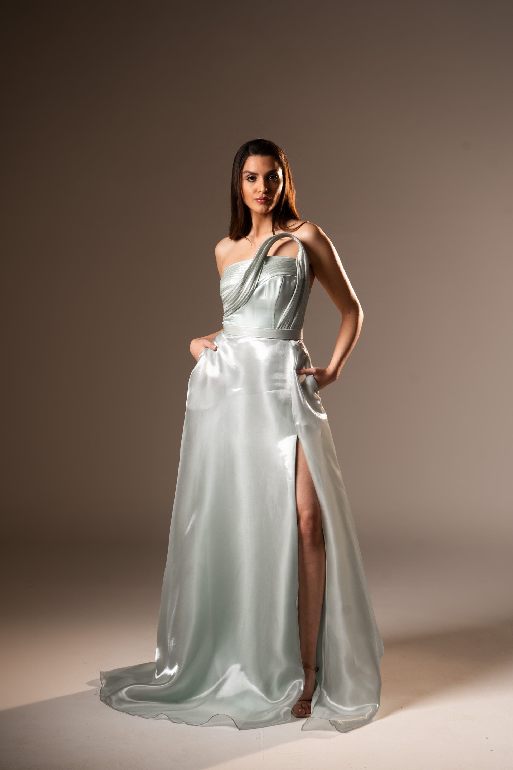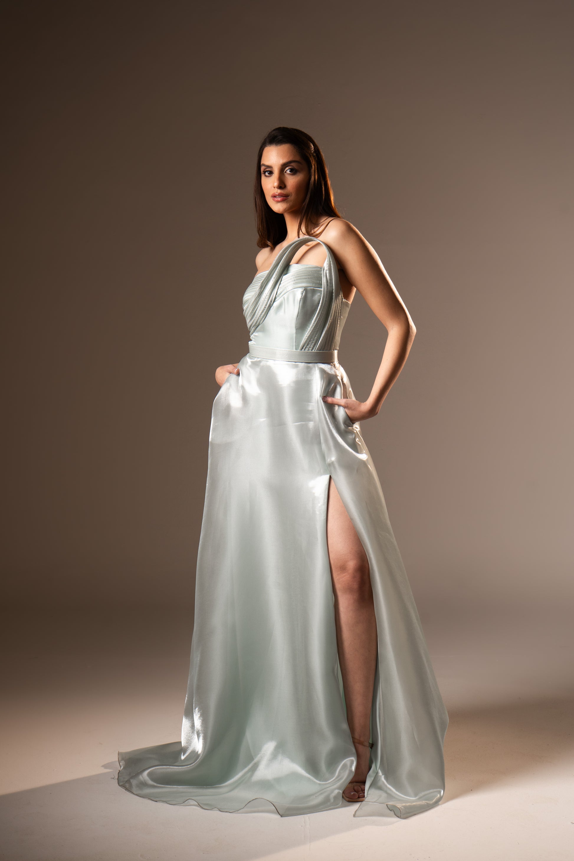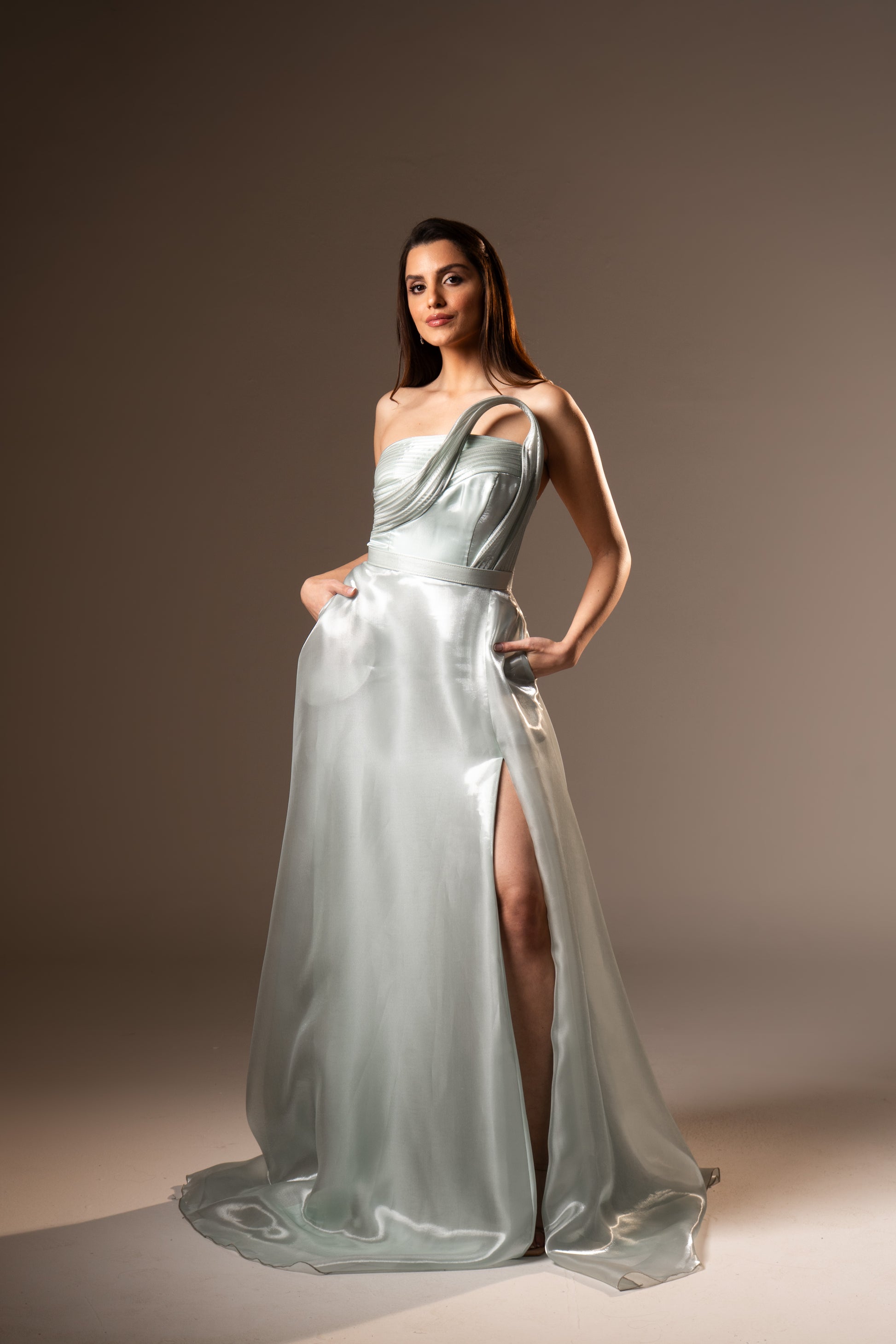 Lorraine embodies classic romance with its strapless neckline and softly draped fabric. The silhouette flatters naturally, making it a timeless choice for wedding season and elegant celebrations.