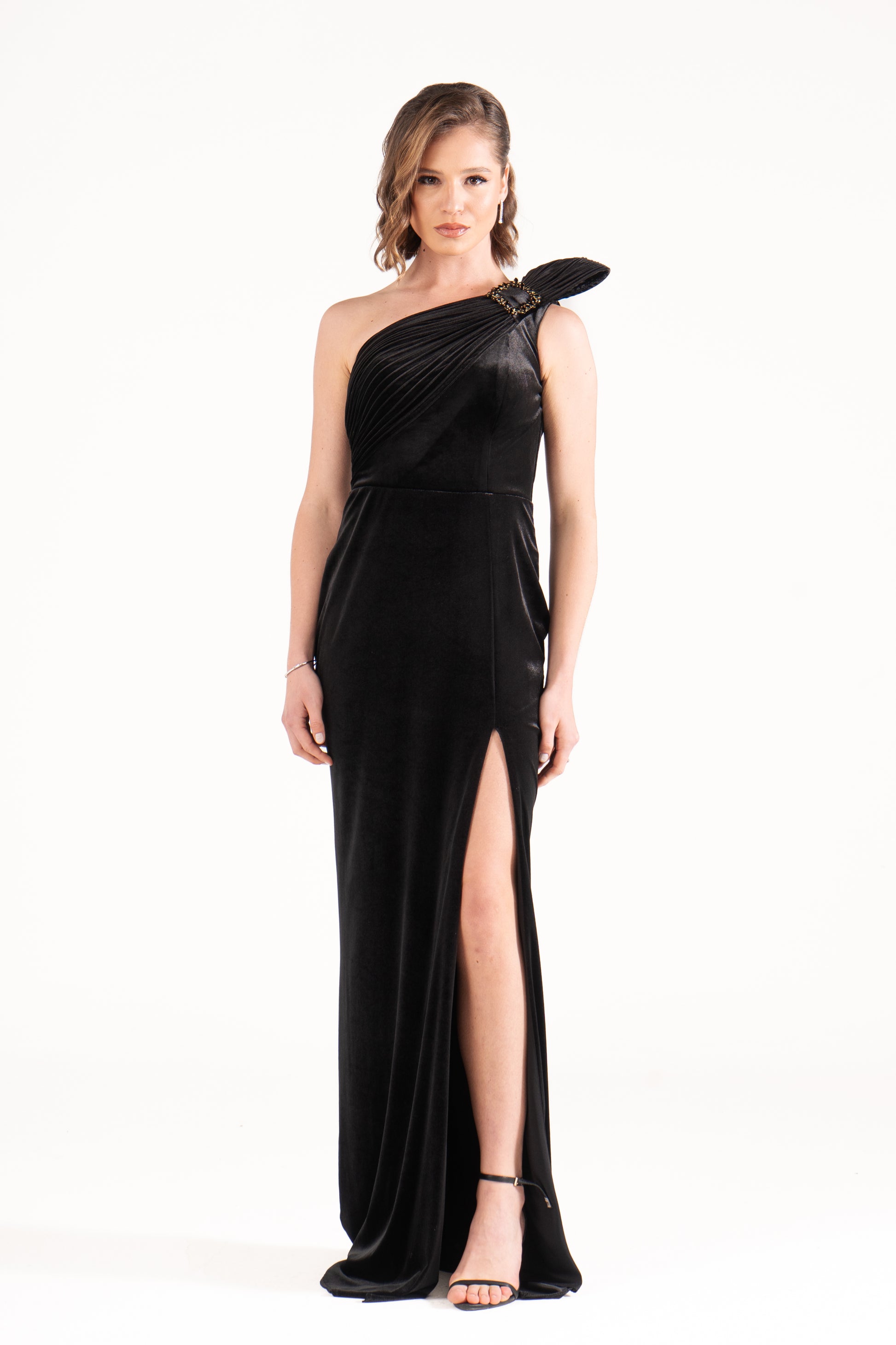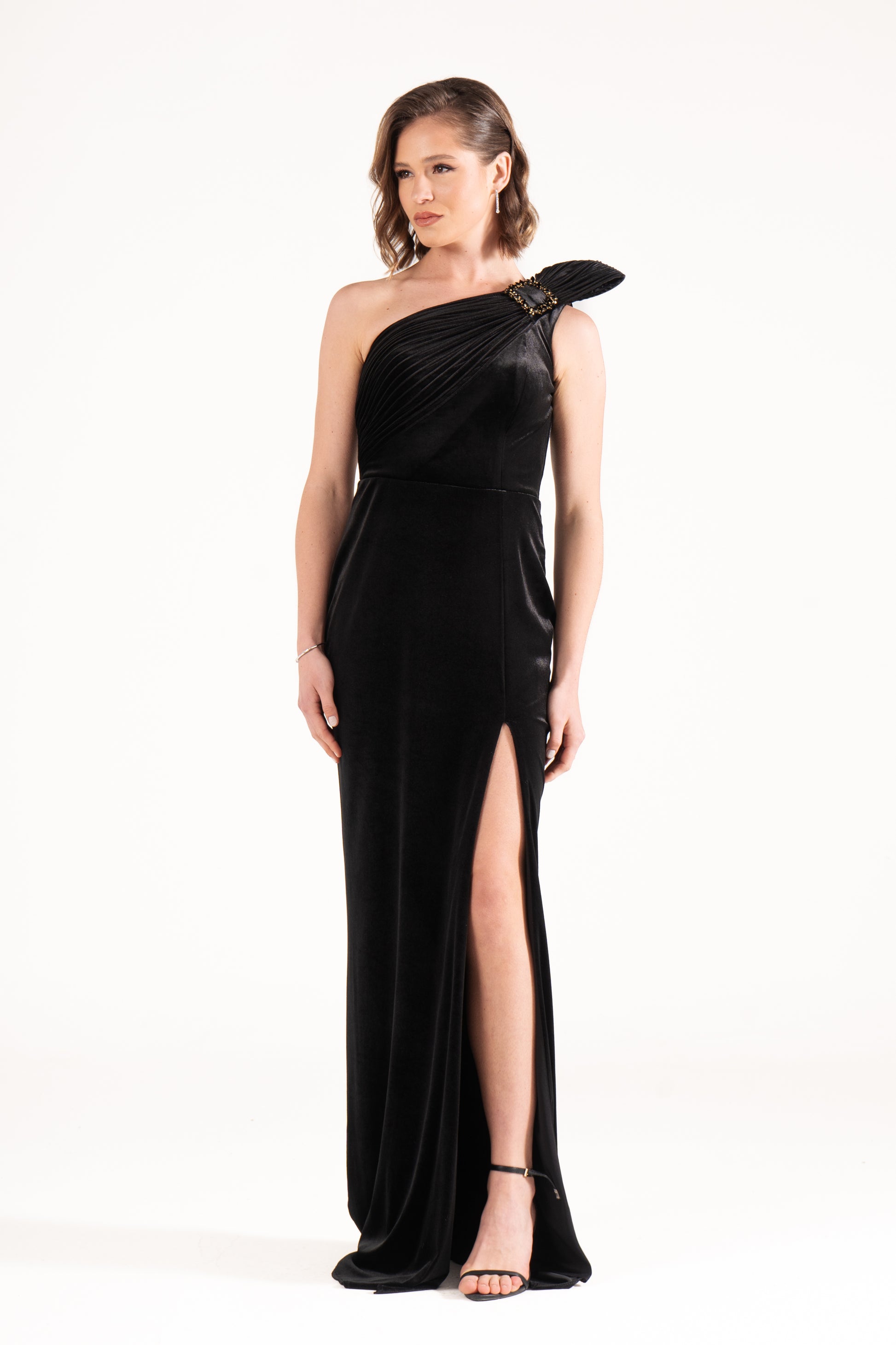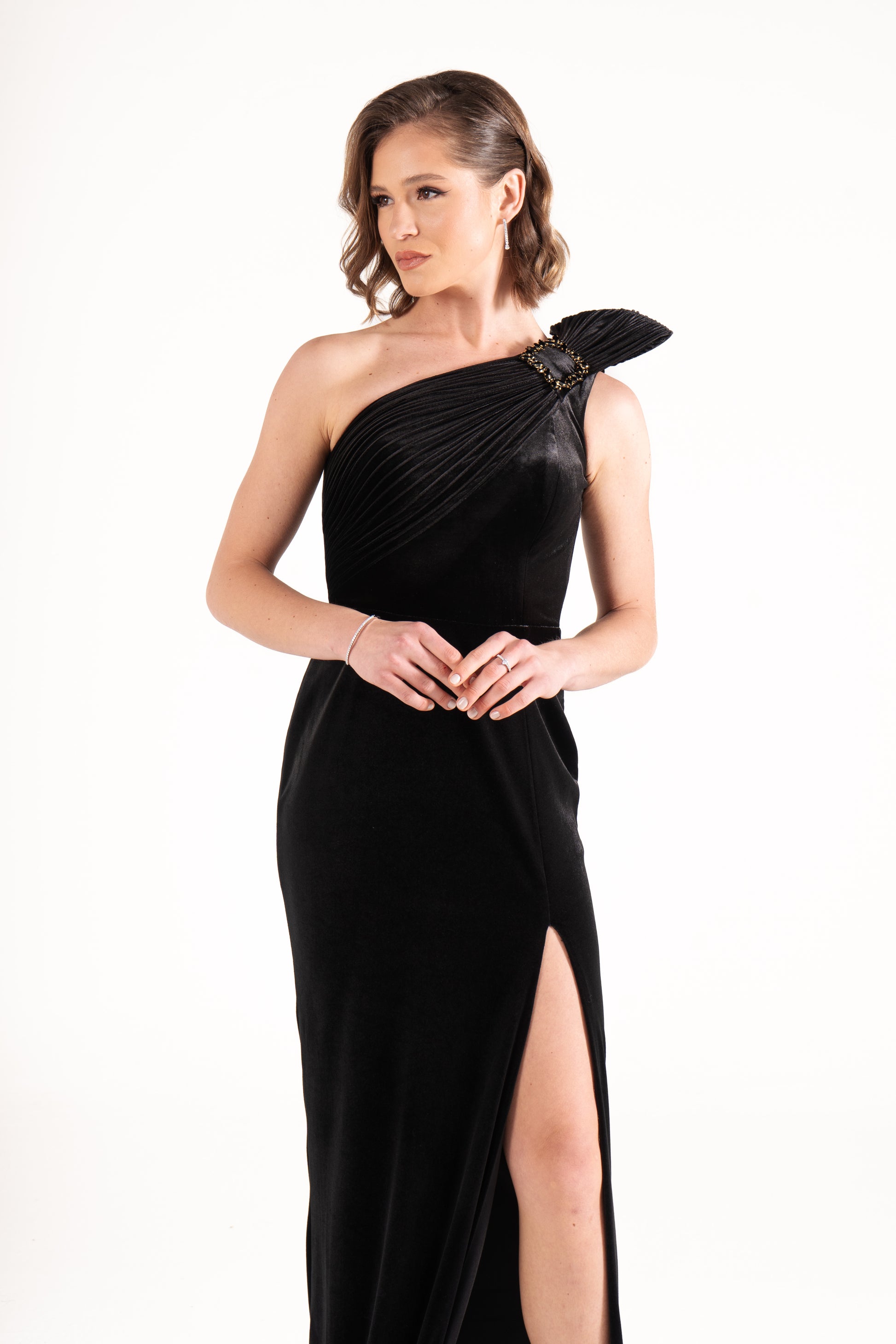 Unleash your bold and daring side with Moonessa! This stunning dress features a high slit and one shoulder design, perfect for making a statement and standing out from the crowd. Show off your risk-taking attitude and be the center of attention with Moonessa.