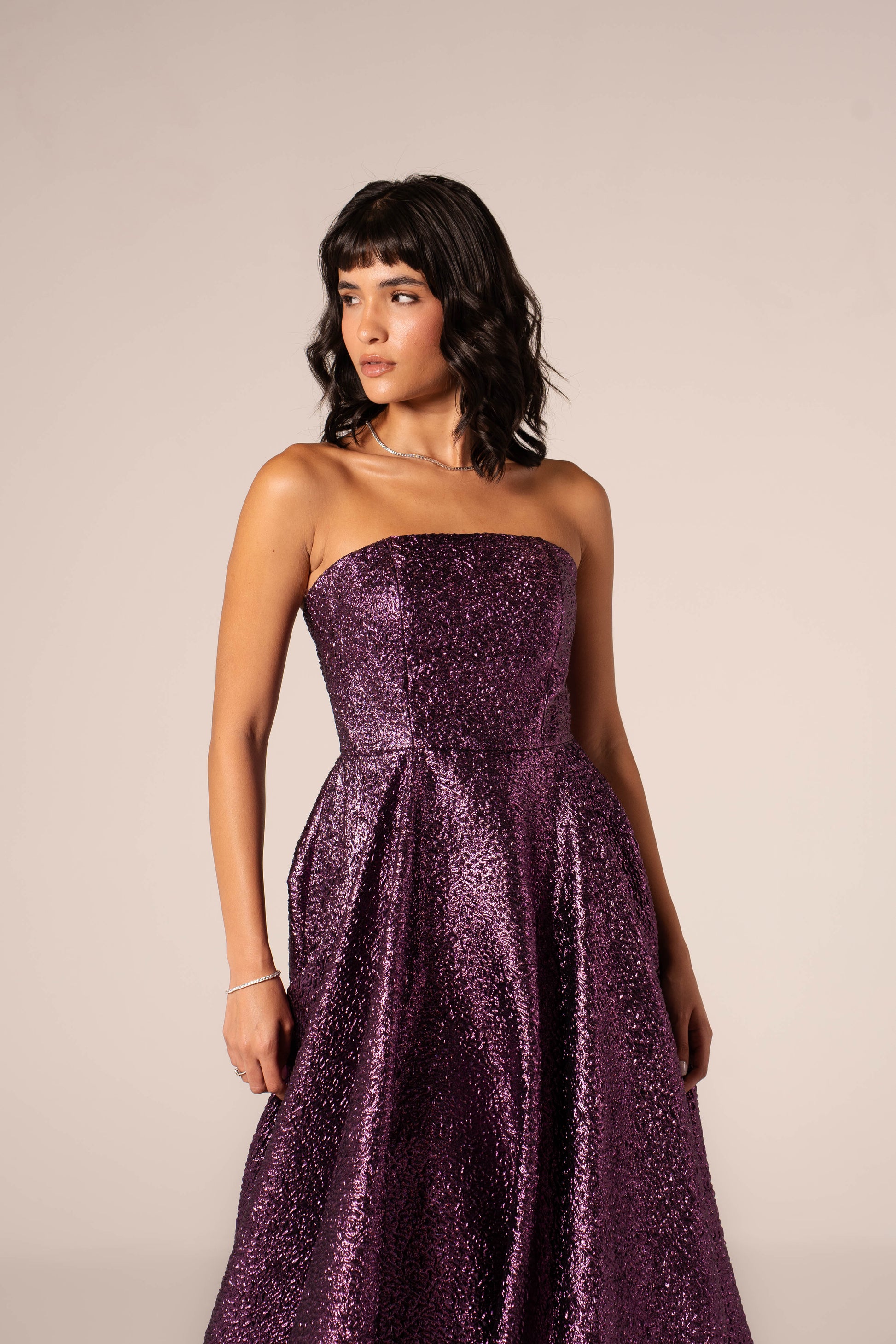 Elevate your evening elegance with Solenne, a stunning strapless maxi dress that commands attention. Crafted from luxurious sequined material, this gown shimmers with every movement, creating an enchanting play of light that ensures you'll be the focal point of any occasion. The sophisticated strapless neckline offers a timeless silhouette while the flowing maxi length provides graceful movement and refined sophistication. Perfect for galas, formal events, or unforgettable nights out, Solenne transforms you into the vision of glamour you deserve to be.