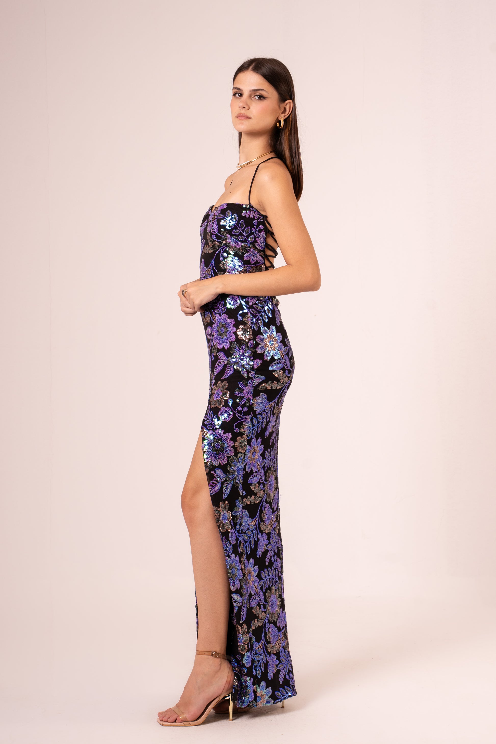 Alerie is an elegant sleeveless maxi evening dress designed for sophisticated occasions. The high slit adds a modern, daring touch while maintaining timeless elegance. Crafted for comfort and style, this dress features a flattering silhouette that moves gracefully with you. Perfect for galas, formal dinners, or special evening events where you want to make a memorable impression.