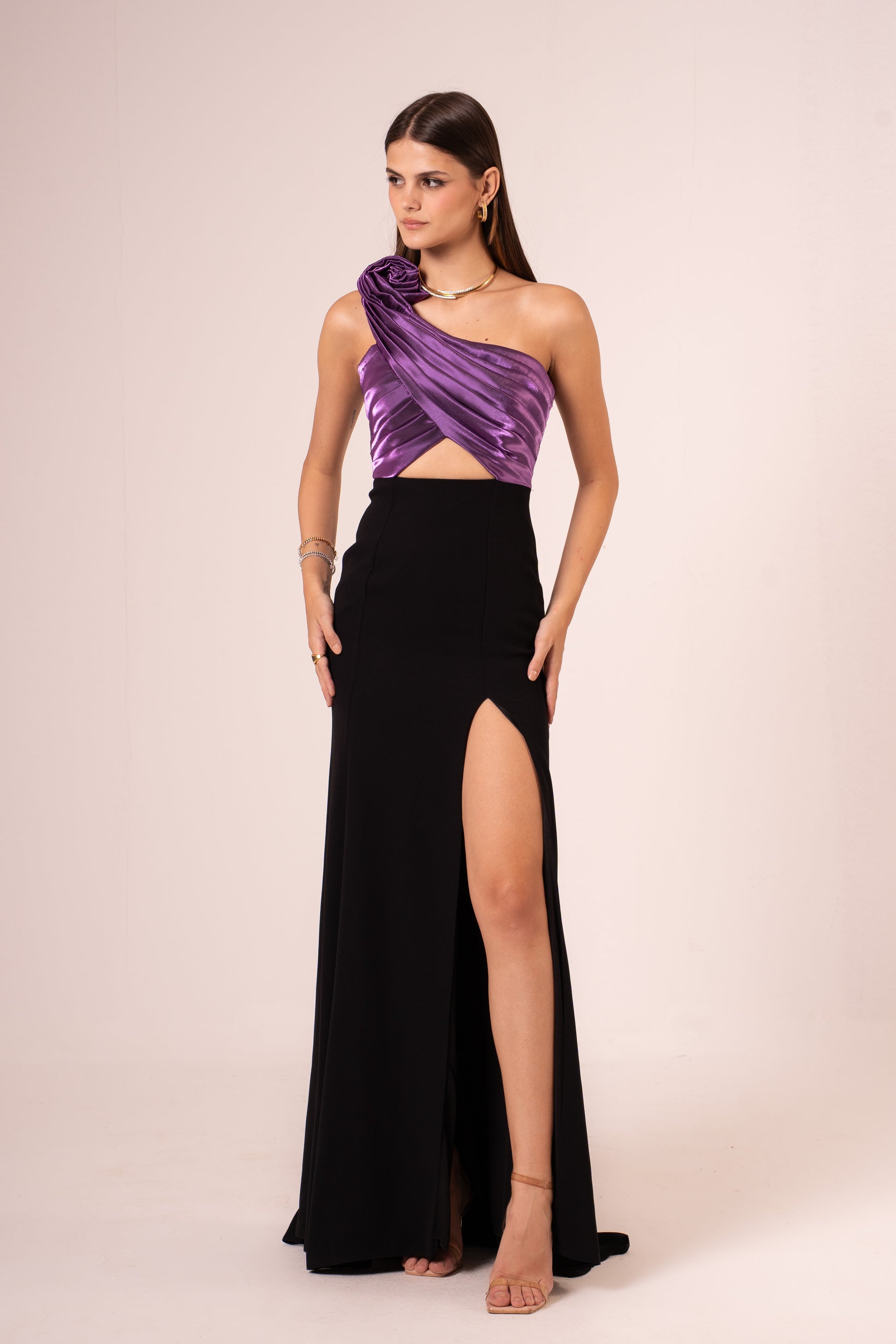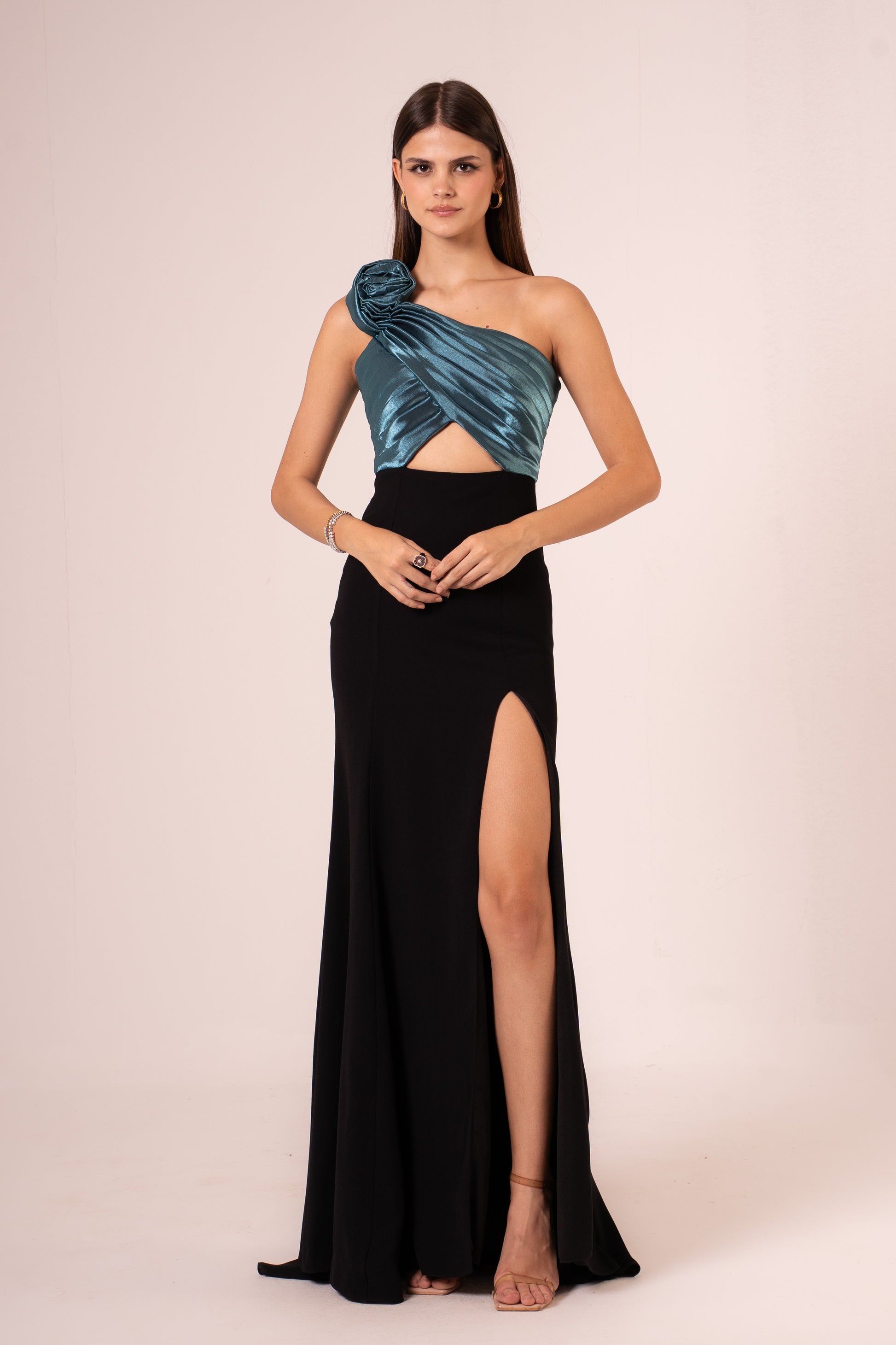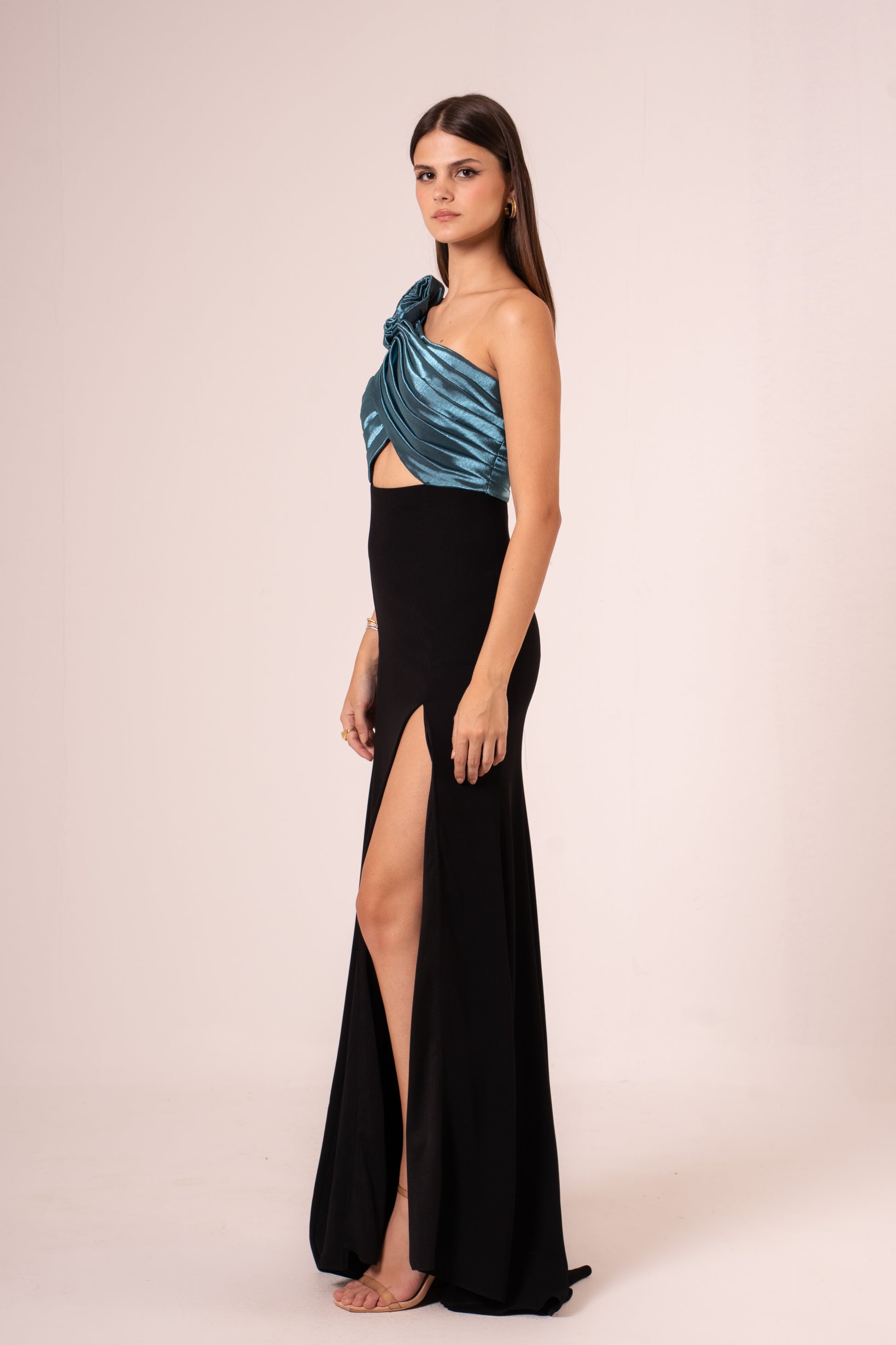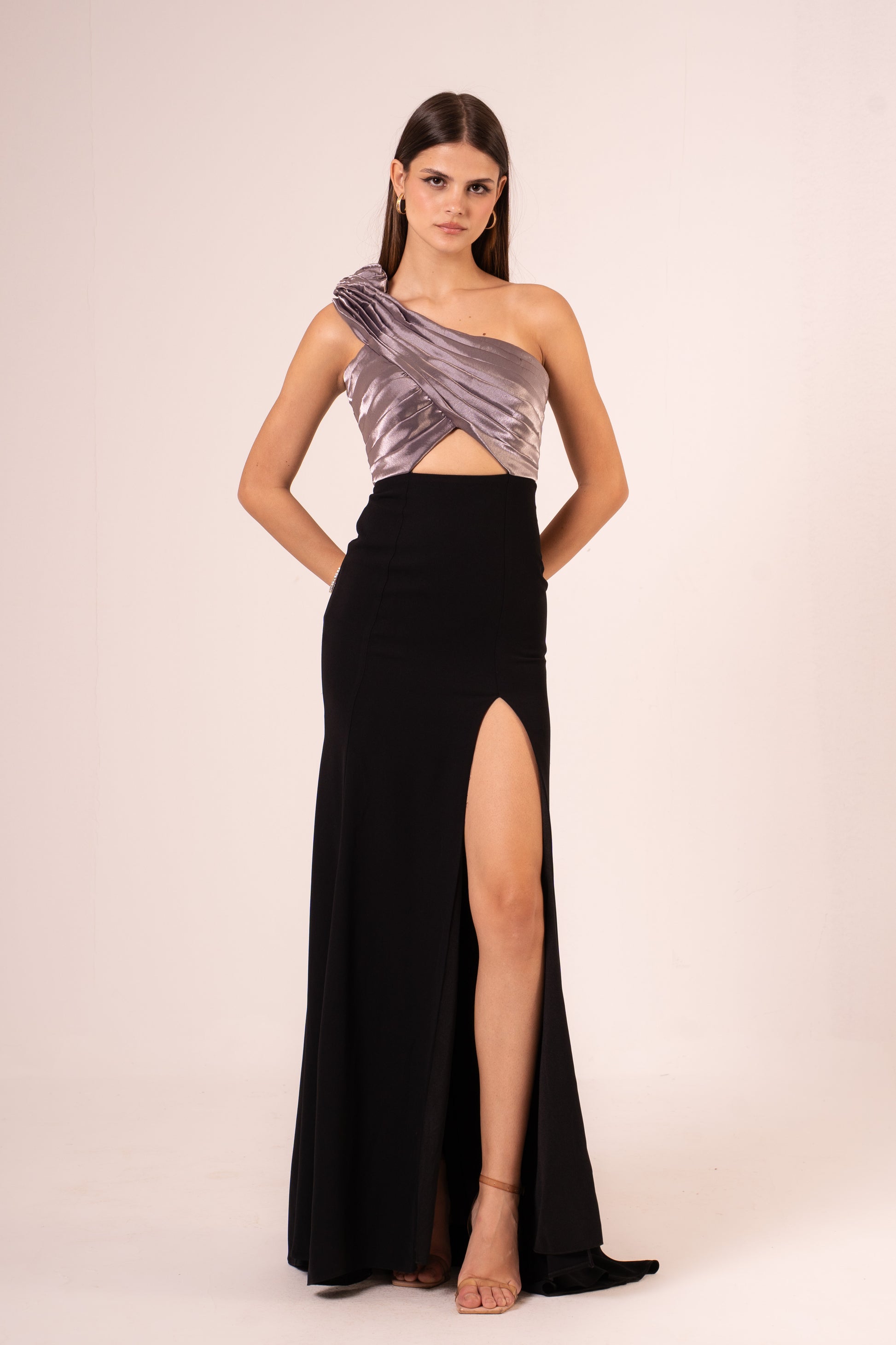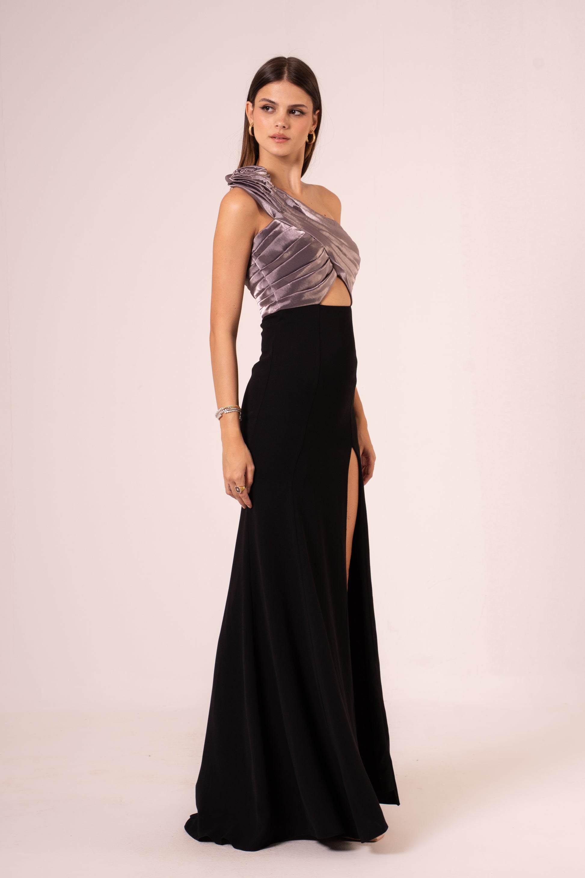 Elevate your evening look with the Jayleen, a sophisticated one-shoulder maxi dress designed to turn heads. The elegant asymmetrical neckline creates a flattering silhouette, while the dramatic high slit adds movement and allure. Crafted for those special nights when you want to make a statement, this dress combines timeless elegance with modern flair. Perfect for galas, celebrations, or any occasion calling for refined glamour.
