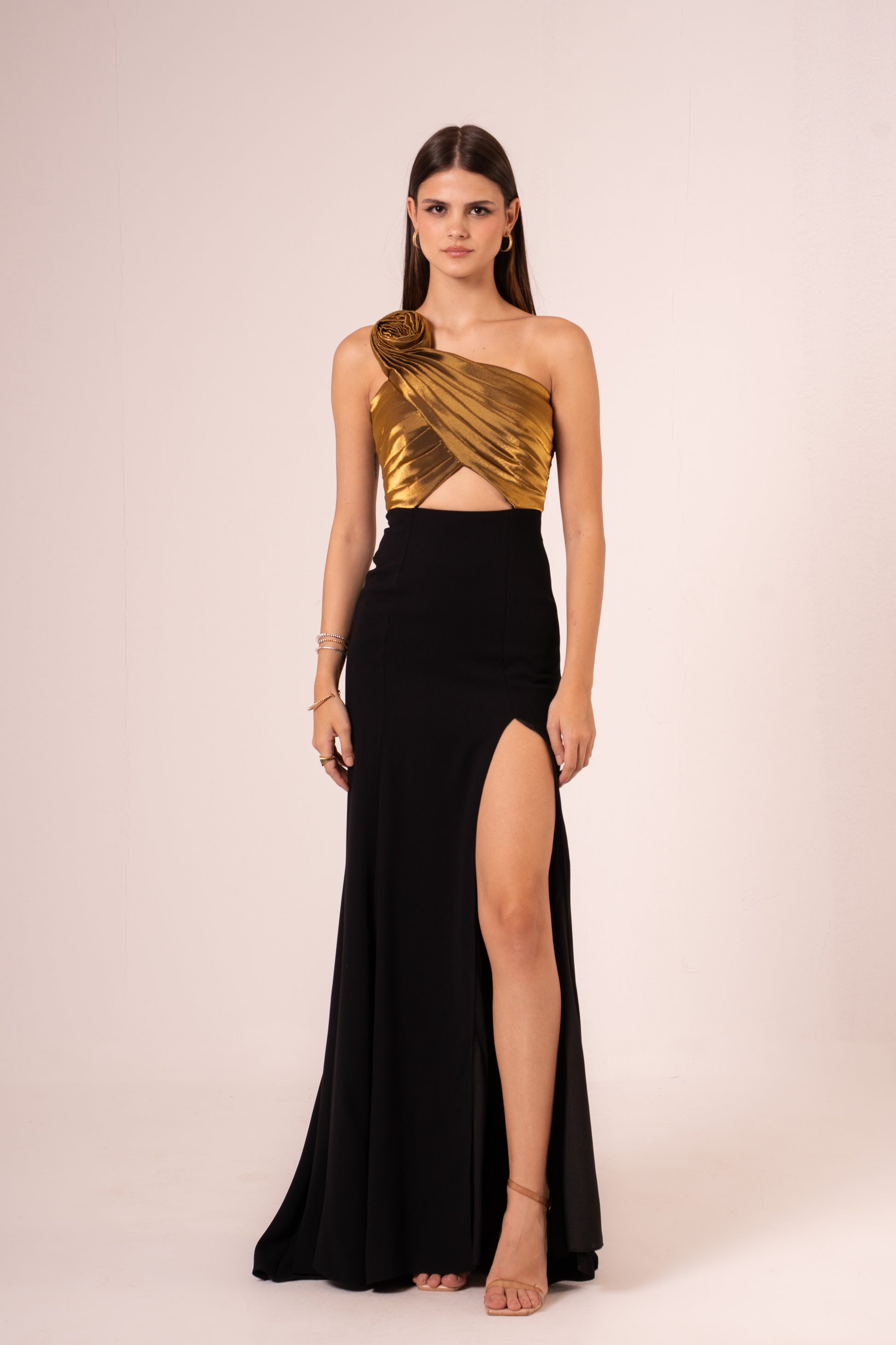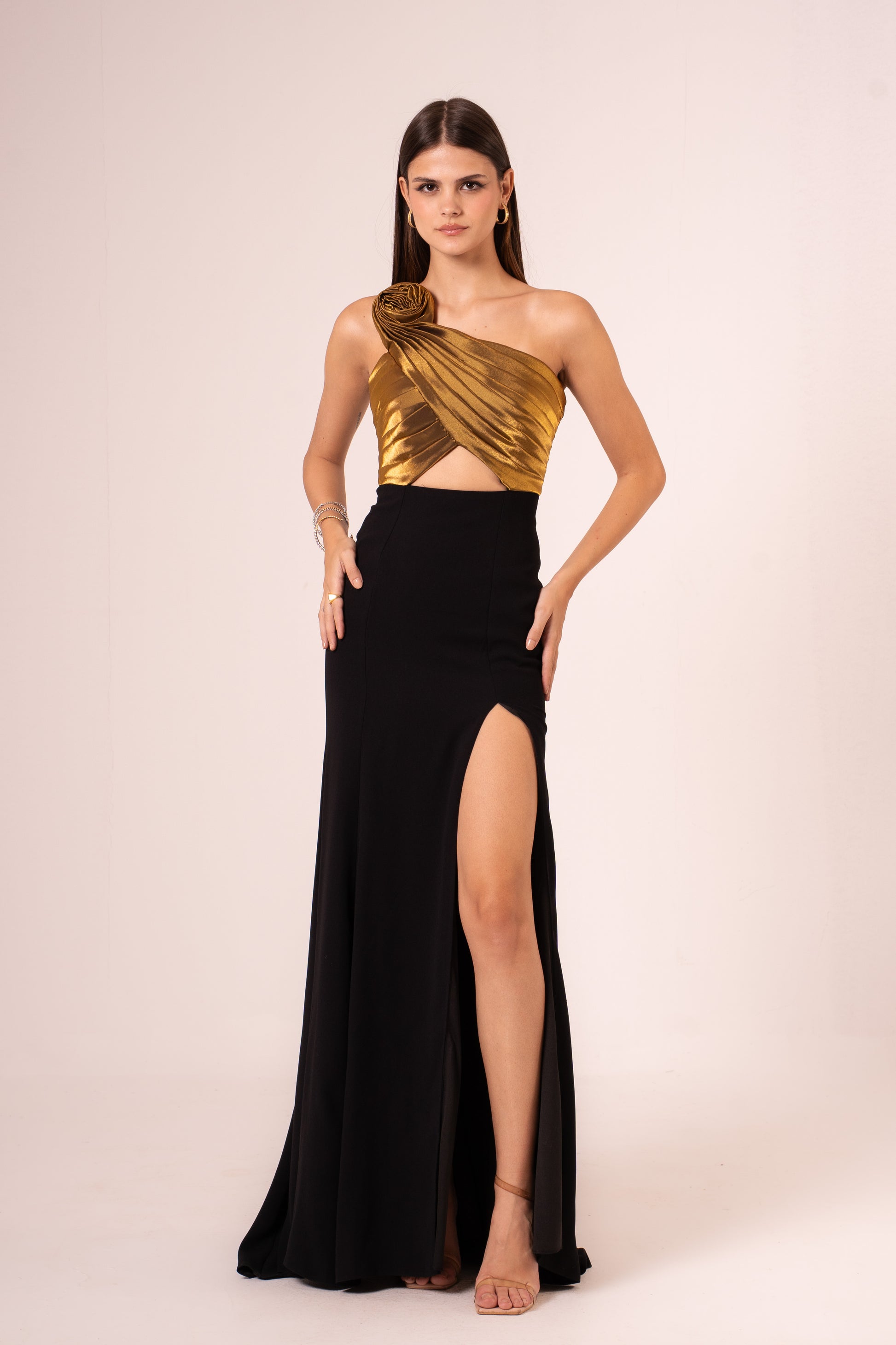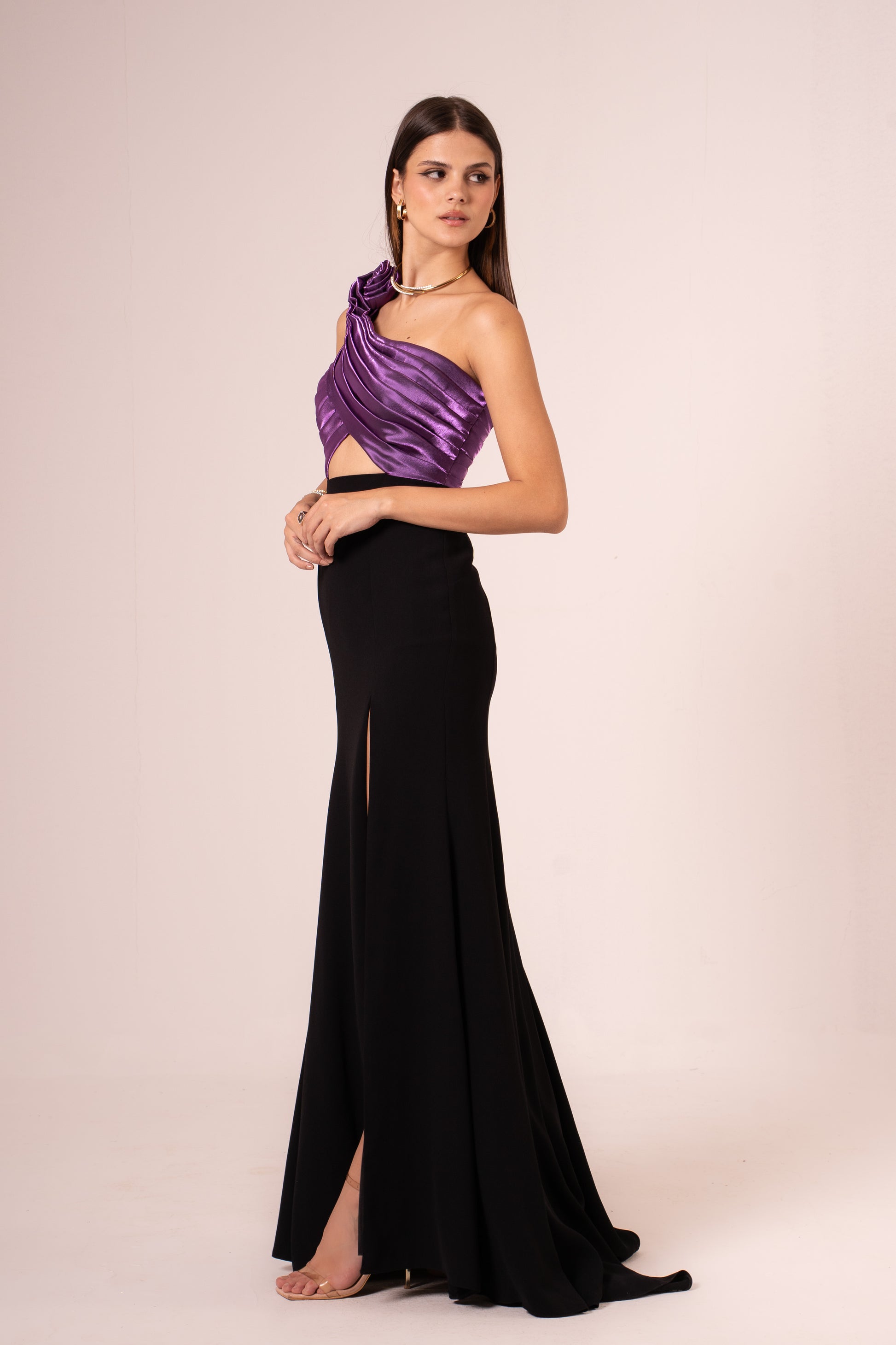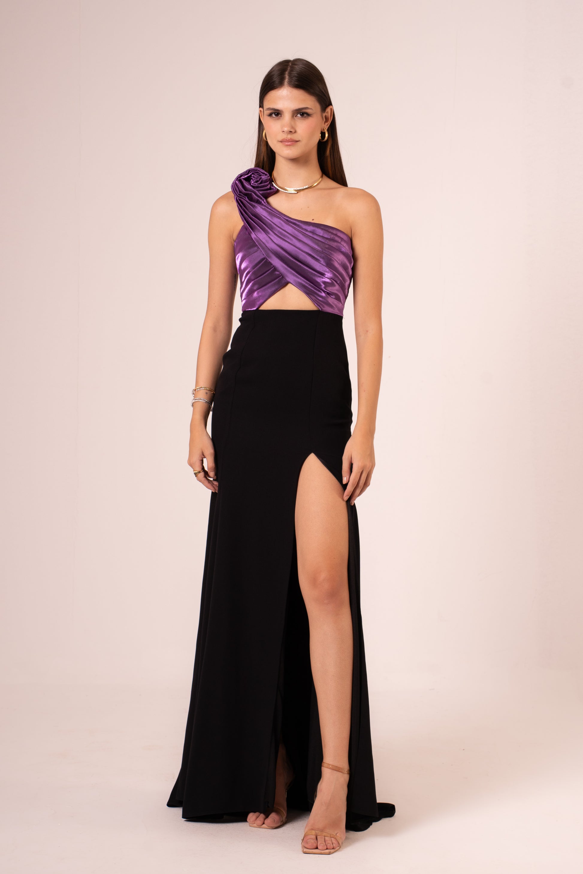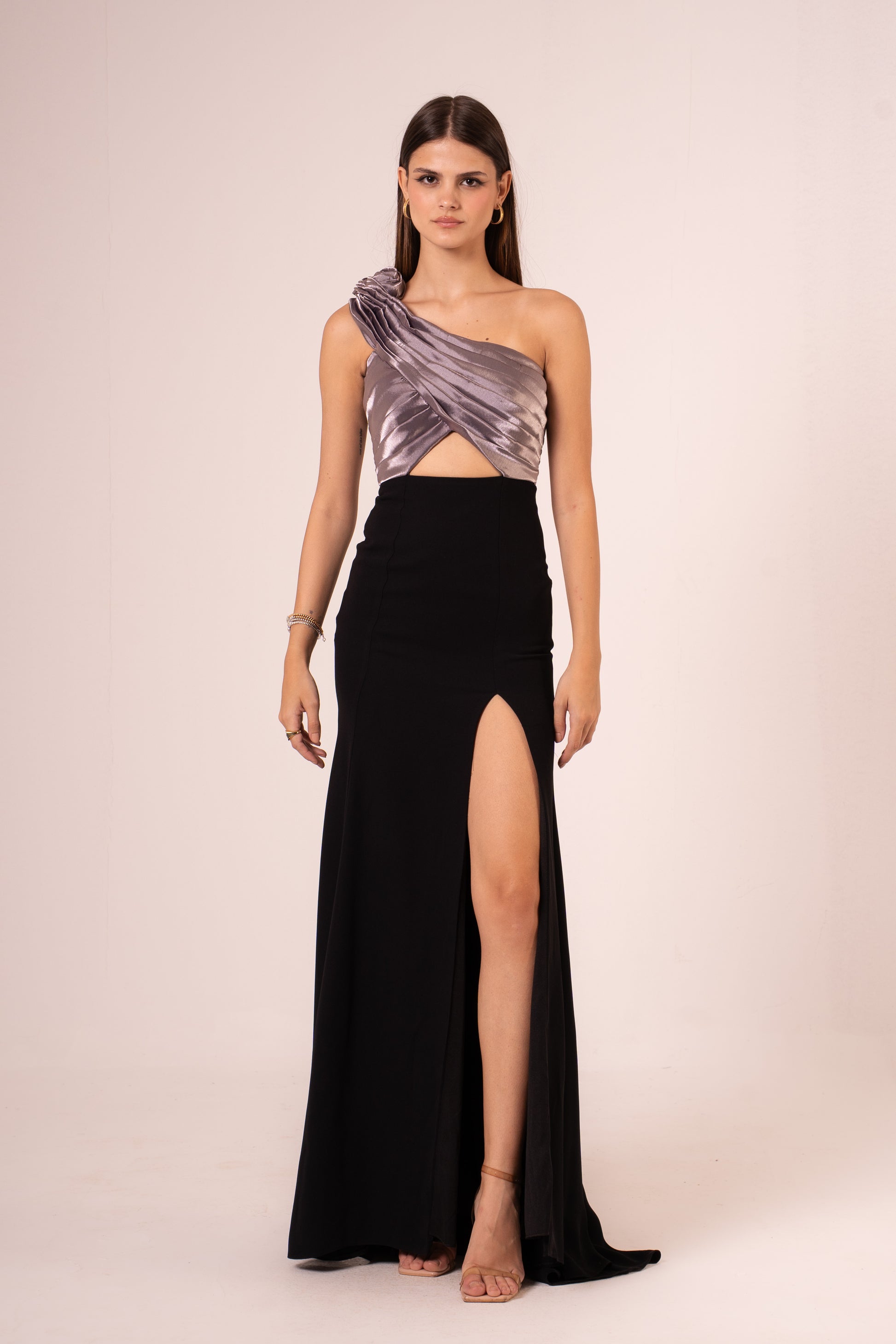 Elevate your evening look with the Jayleen, a sophisticated one-shoulder maxi dress designed to turn heads. The elegant asymmetrical neckline creates a flattering silhouette, while the dramatic high slit adds movement and allure. Crafted for those special nights when you want to make a statement, this dress combines timeless elegance with modern flair. Perfect for galas, celebrations, or any occasion calling for refined glamour.