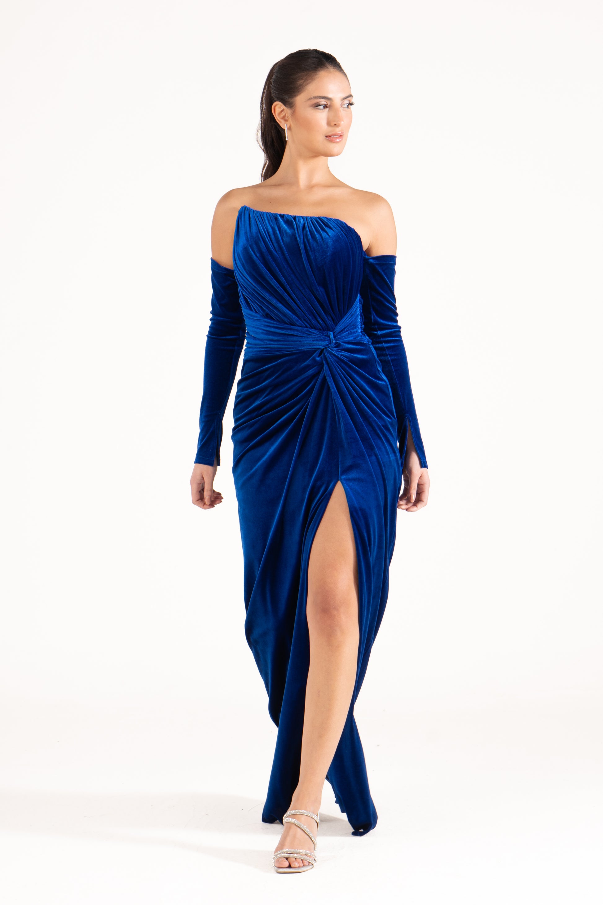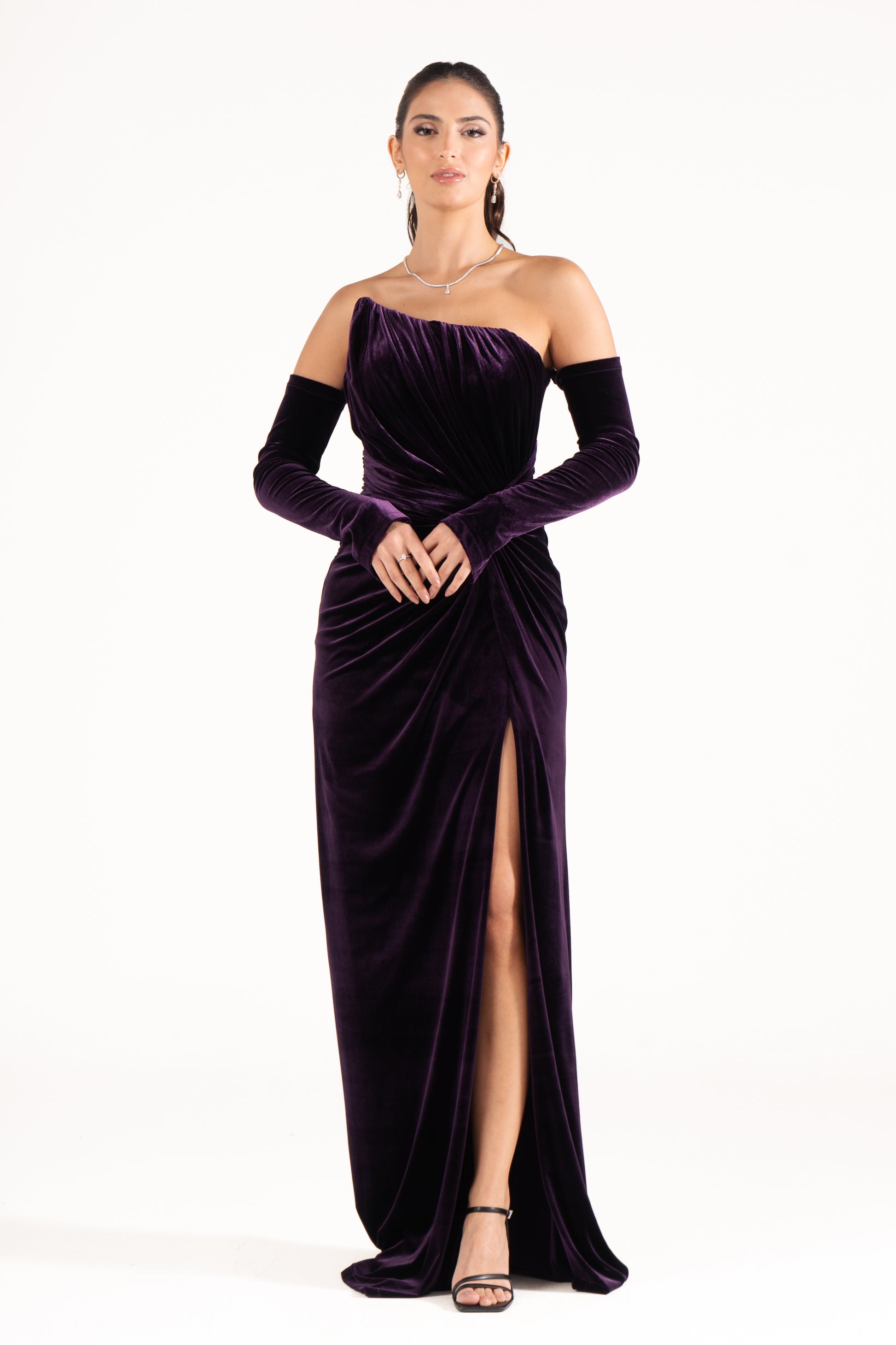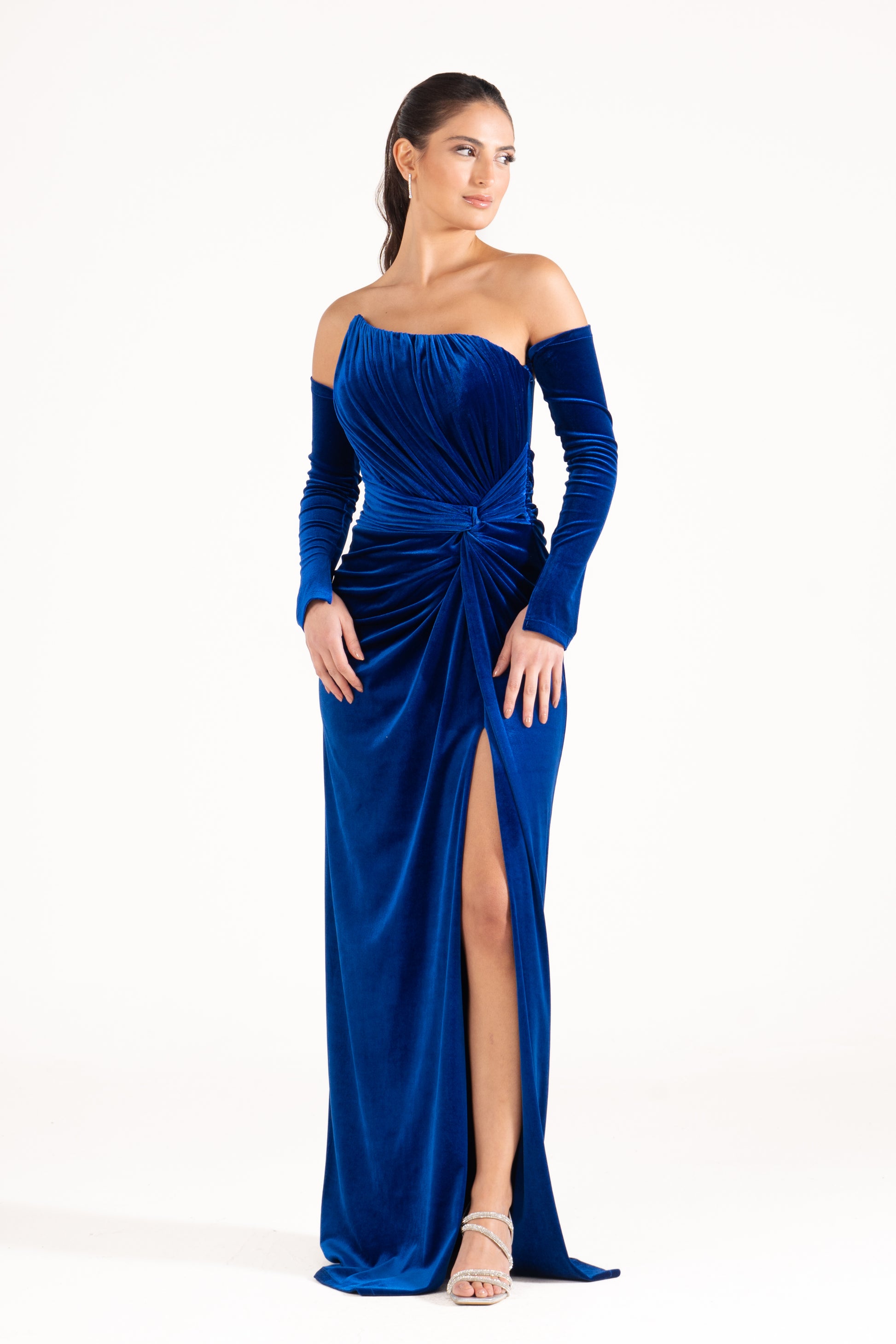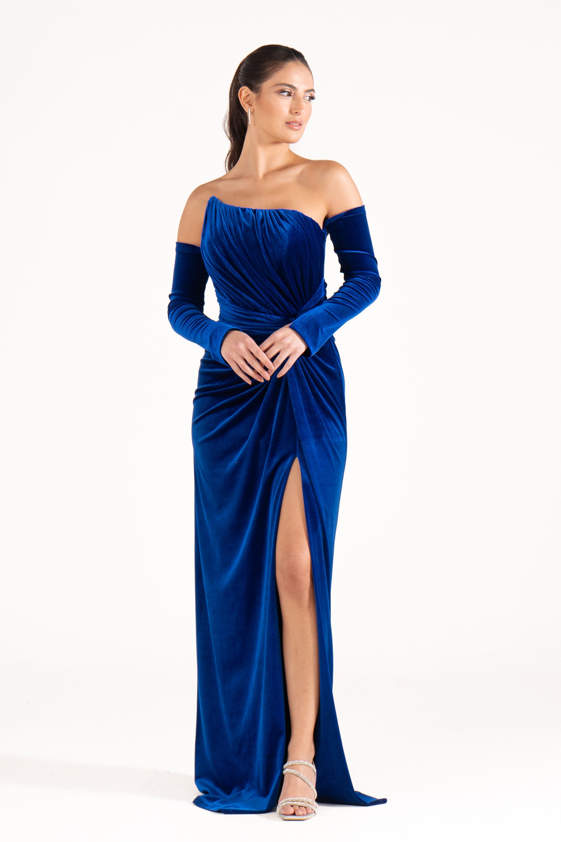 Unleash your daring side with Sofia, the strapless maxi dress made of luxurious velvet material. The high slit and off shoulder sleeves add a touch of boldness to your look, perfect for a night out or special occasion. Be fearless and make a statement with Sofia!