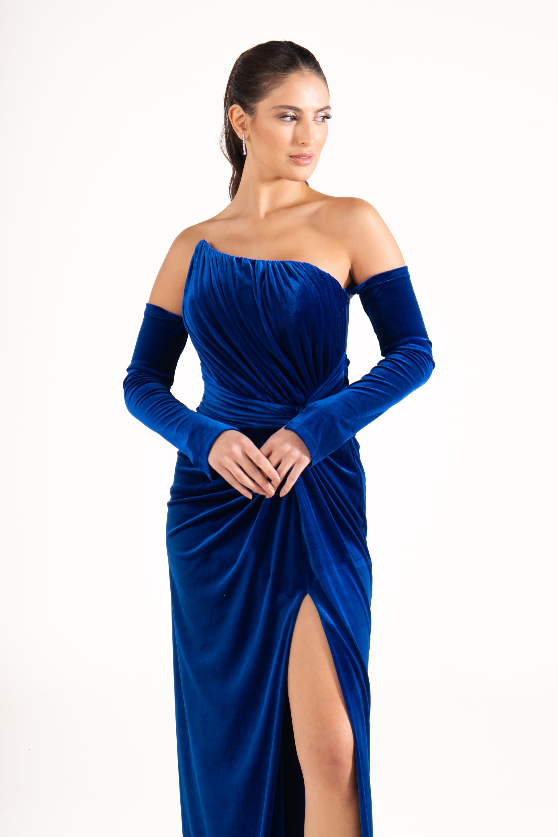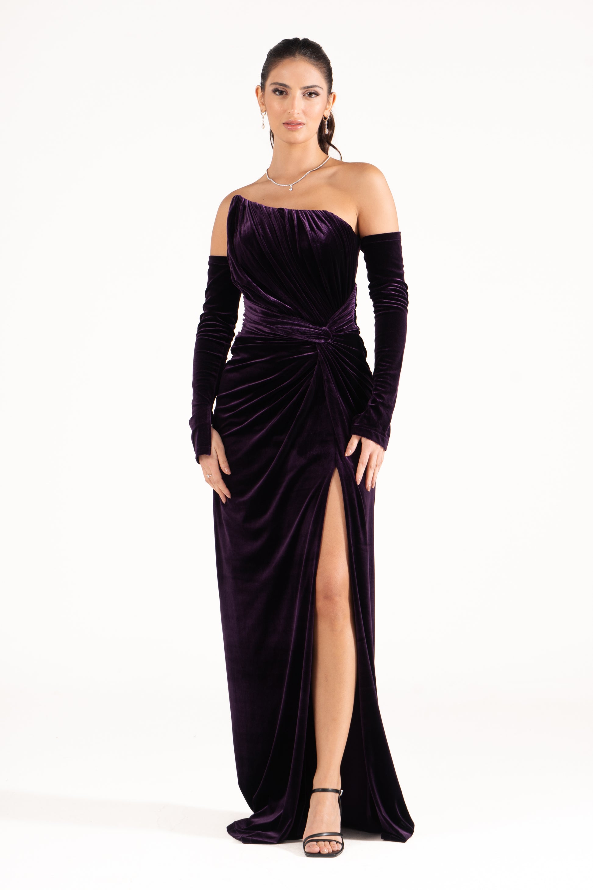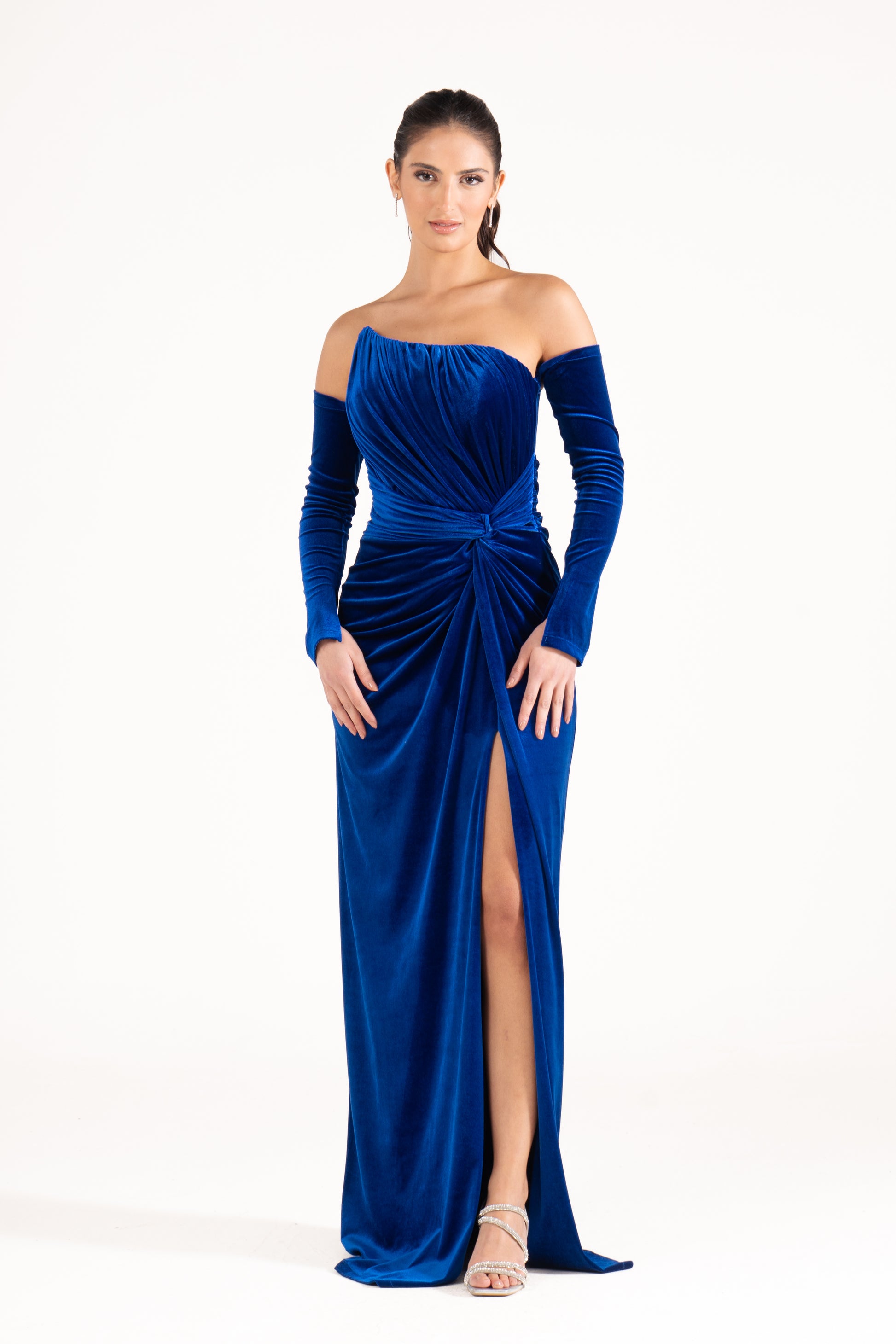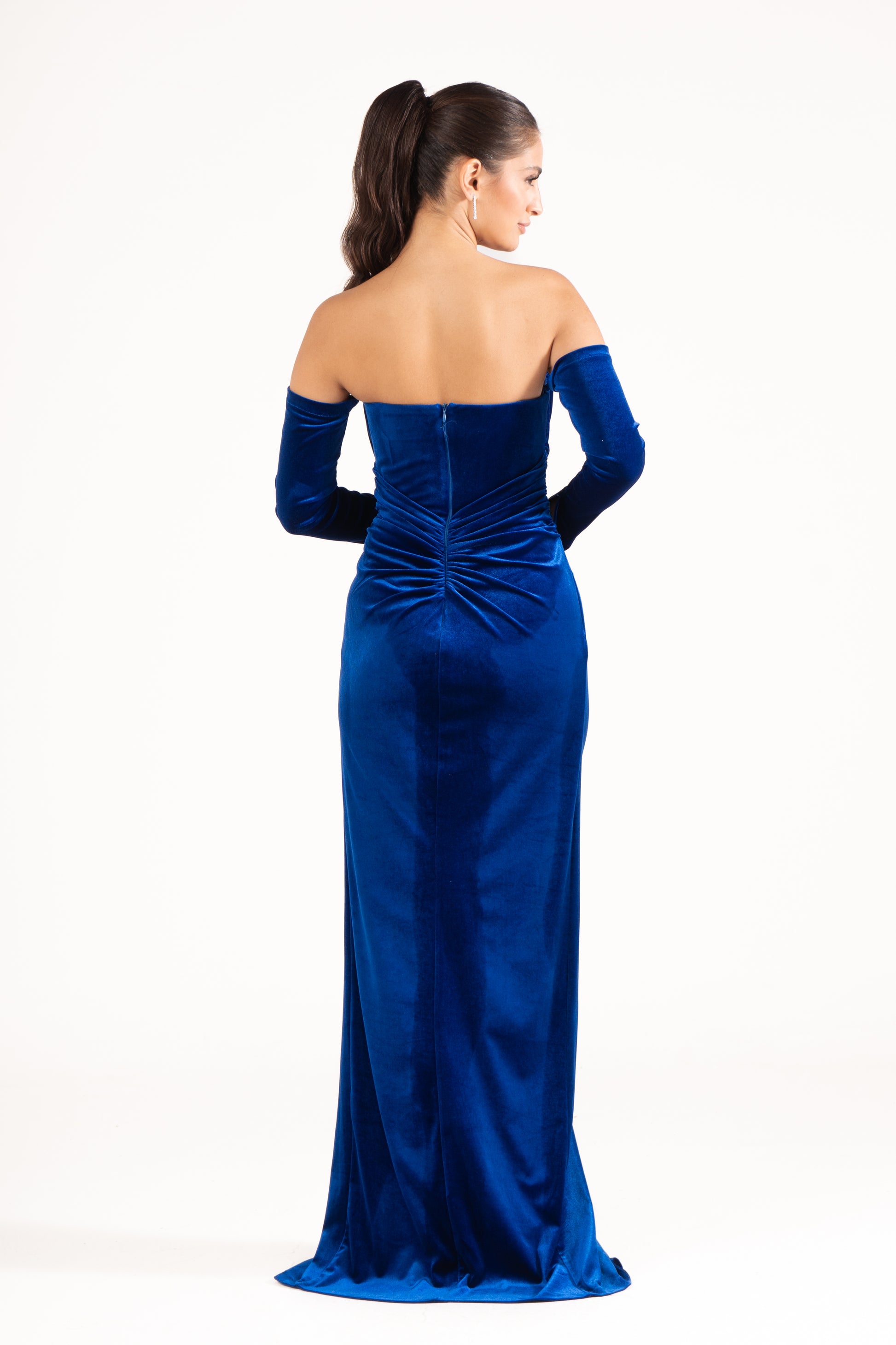 Unleash your daring side with Sofia, the strapless maxi dress made of luxurious velvet material. The high slit and off shoulder sleeves add a touch of boldness to your look, perfect for a night out or special occasion. Be fearless and make a statement with Sofia!
